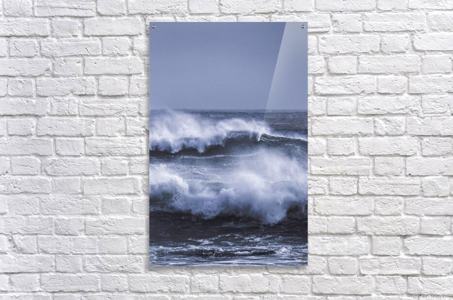 Dramatic ocean blue scene on foaming waves of sea turbulence. Granville Harbour Western Tasmania Australia