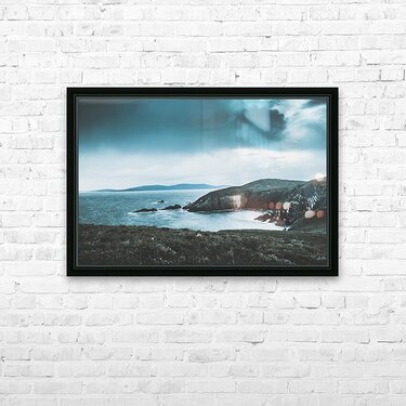 Dark tense and dramatic sea cliffs Picture Frame Printing