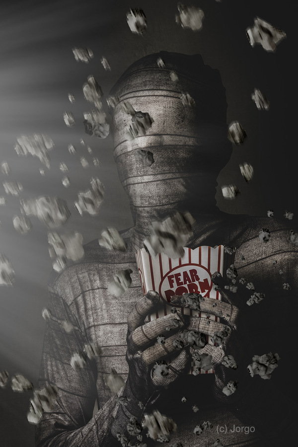 Scared Mummy Eating Up Fear Porn Cinema Pop Corn While Watching The Mainstream Media News