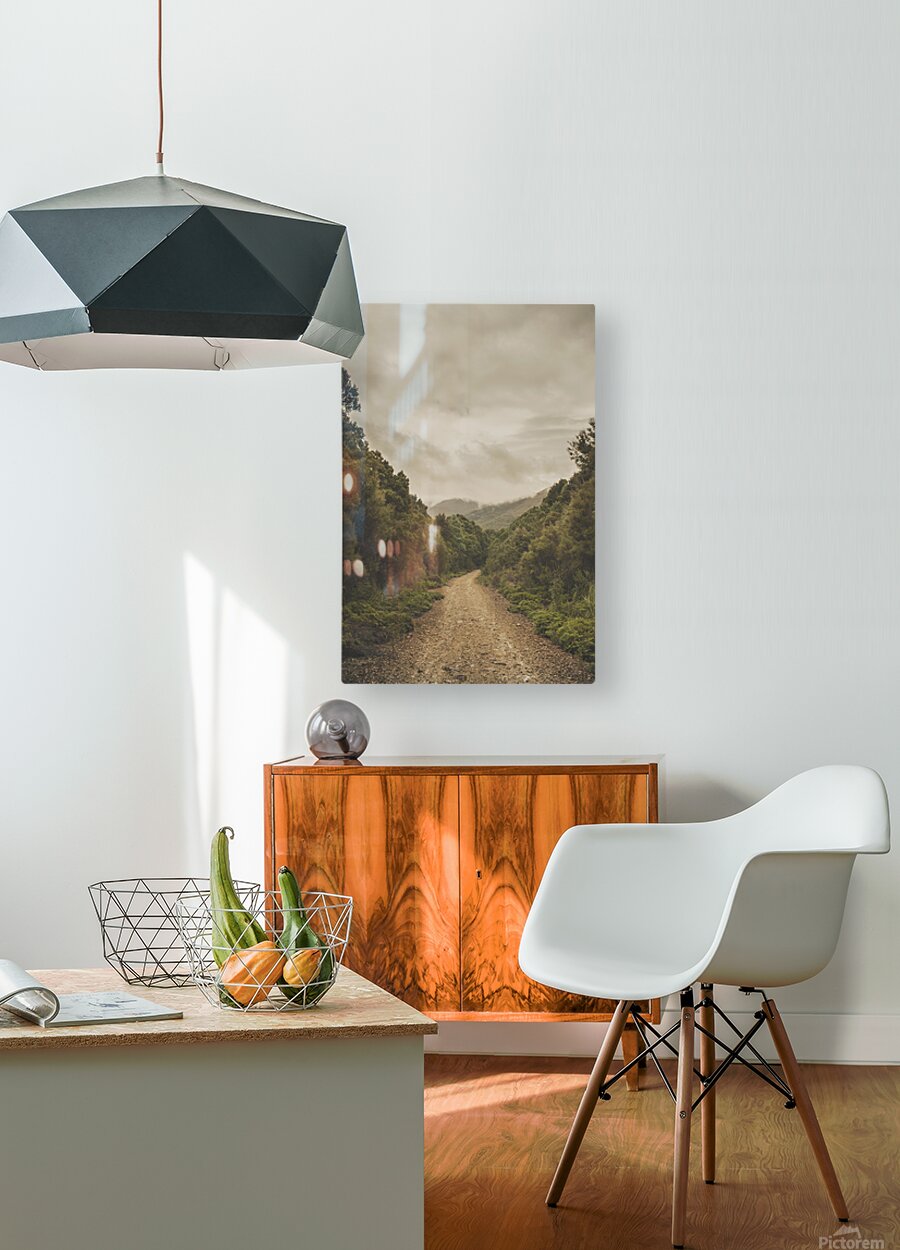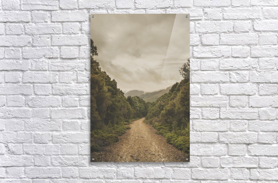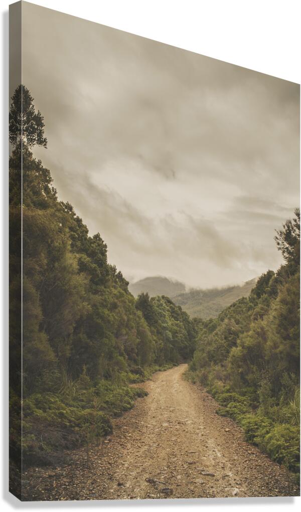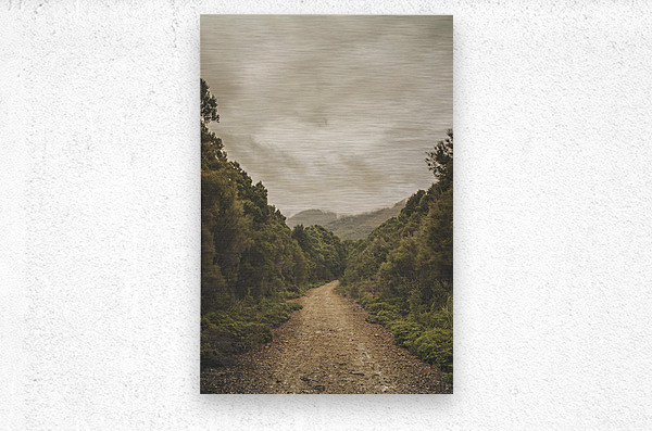 Vintage outback Australia landscape of a dirt track leading into the Wilderness of Rosebery Tasmania. Off the beaten track