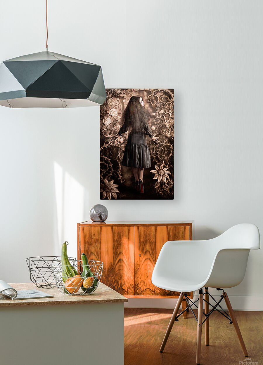Get this artwork "Fairy tale girl walking through secret garden" in a framed print.