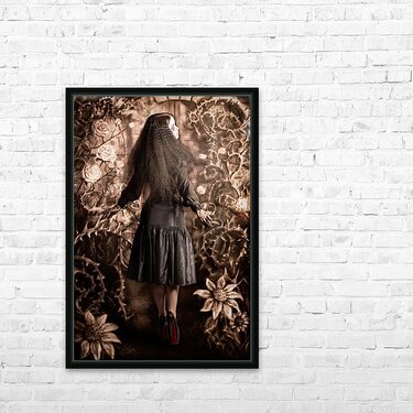 Fairy tale girl walking through secret garden Picture Frame Printing