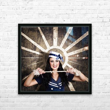 Sailor girl portrait. Vintage design background Picture Frame Printing