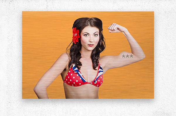 ABOUT THIS ARTWORK: PINUP GIRL FLEXING BICEPS MUSCLE. BODYBUILDING