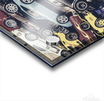 Creative car art on a busy workshop of mechanical repairs parked and piled up