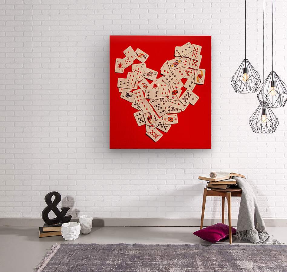 Romantic red design on a play of: game set and match with a heart of cards from a gamble of chance. Full house