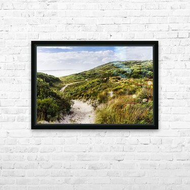 Sand dune path leading to Tasmania beach landscape Picture Frame Printing
