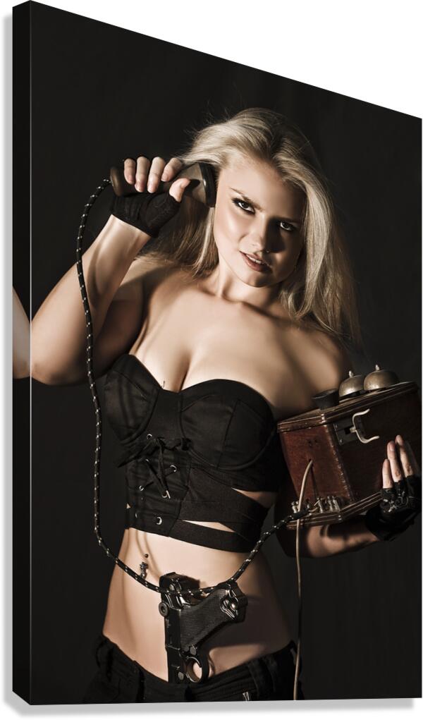 Get this artwork "Sexy blond secret agent" in a framed print.