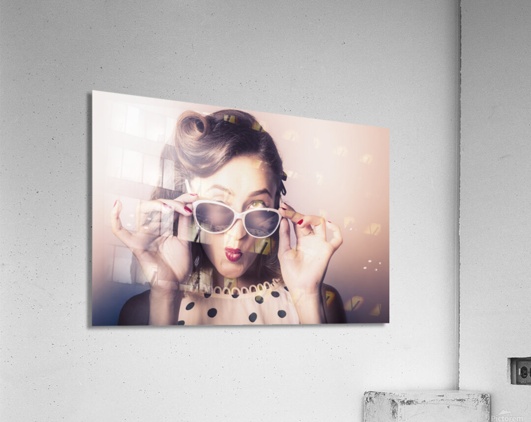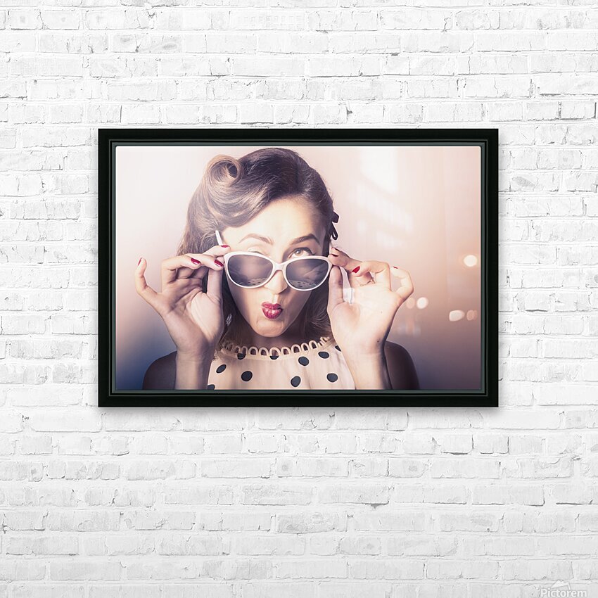 Fun comical retro fashion portrait. Pin-up pout Frame print