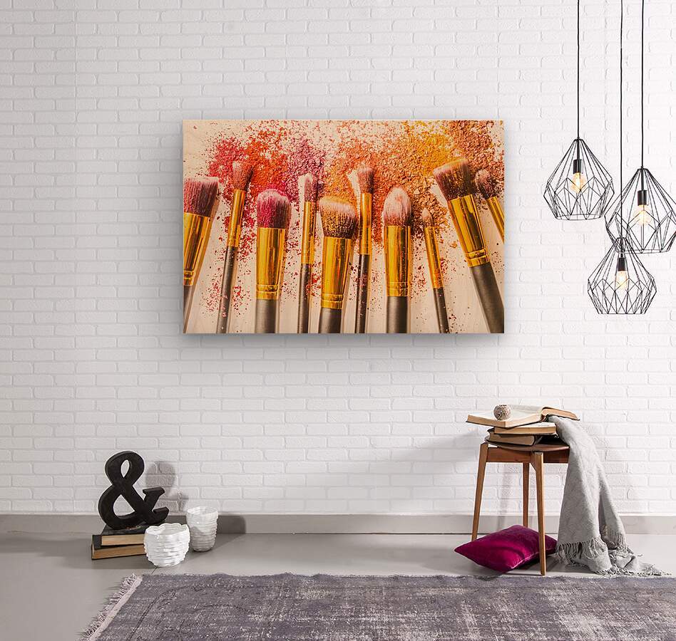 Cosmetic still life artwork on a lineup of the usual colors showcasing decorative powder variables. Powder Palette