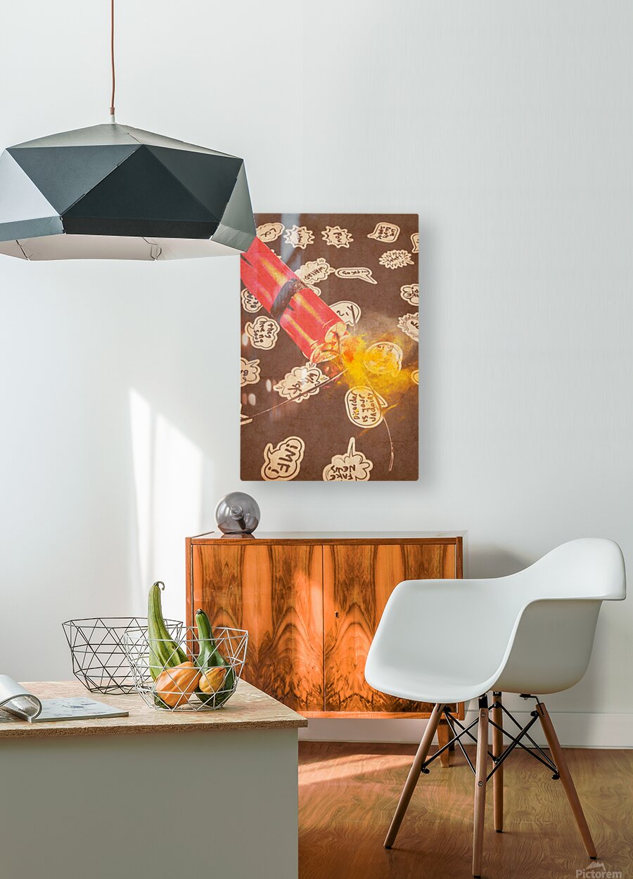 Charged up retro scene on comic explosives and heated up converse. Fiery fuse
