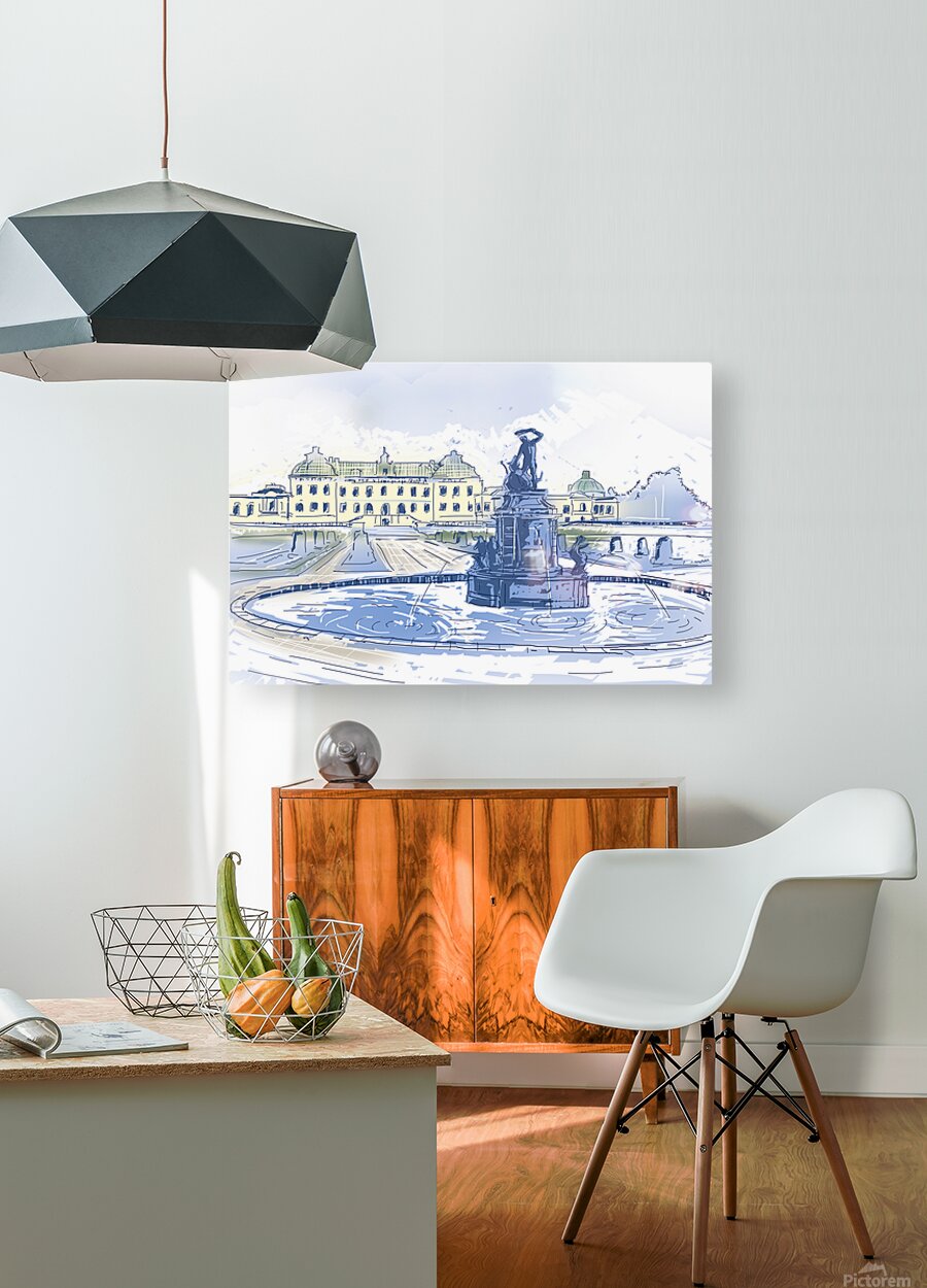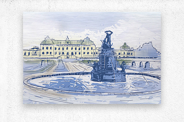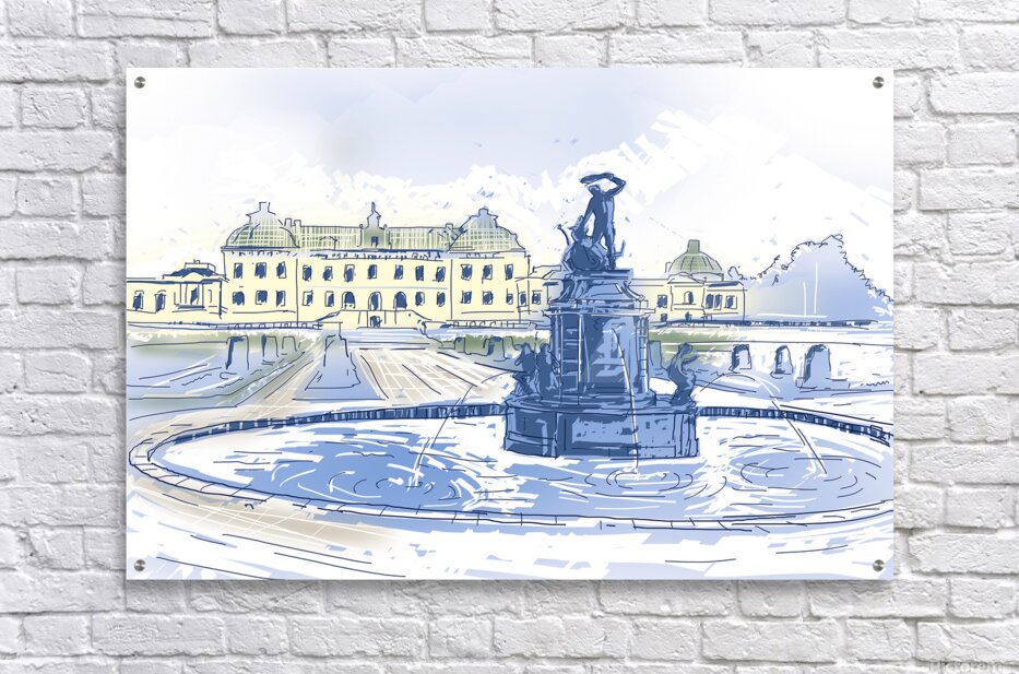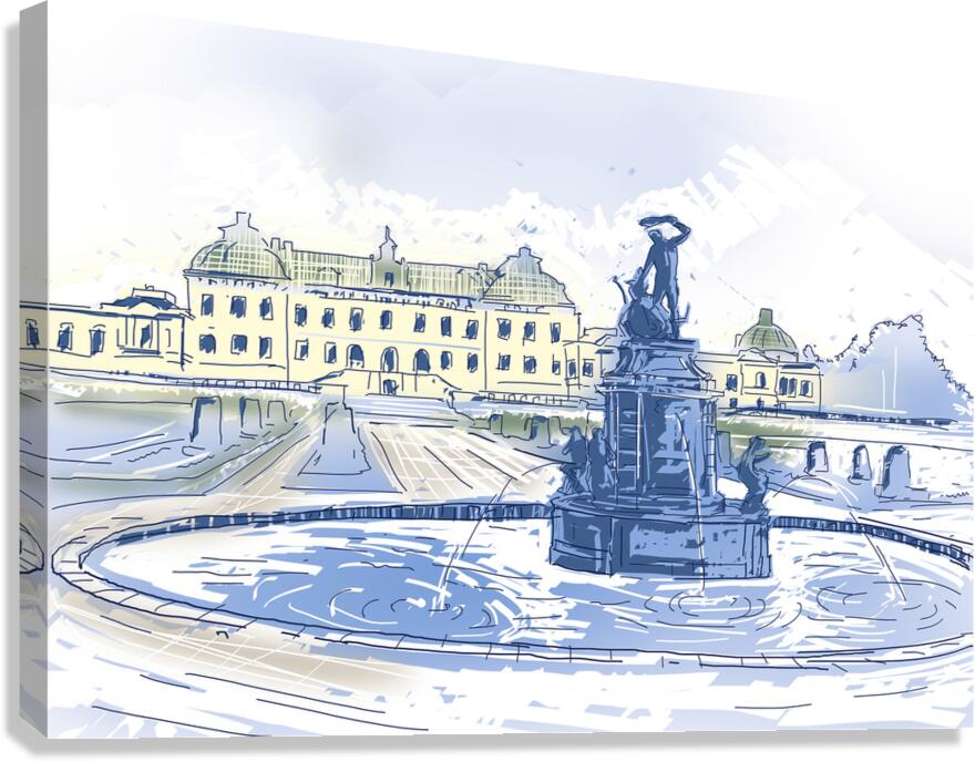 Get this artwork "Drottningholms Slott royal palace and fountain Illustration" in a framed print.