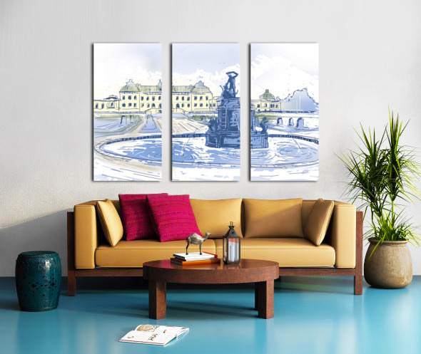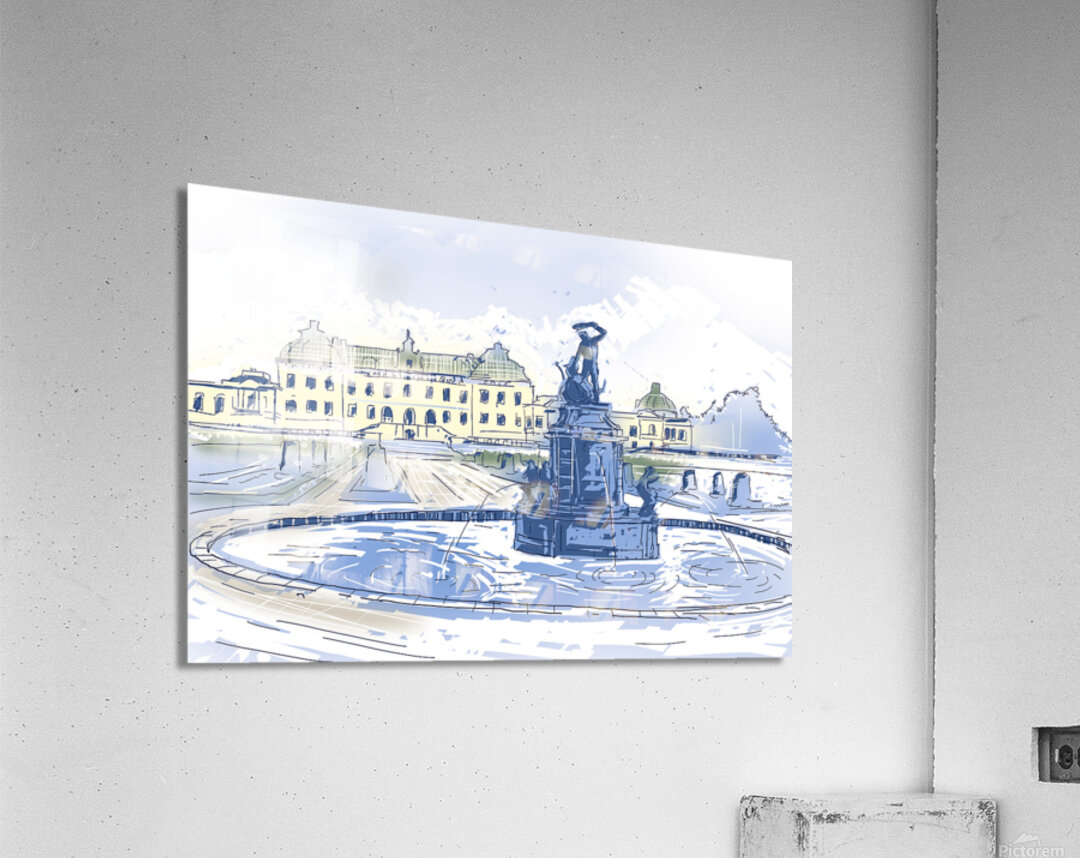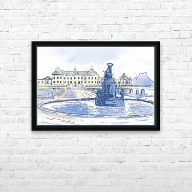 Drottningholms Slott royal palace and fountain Illustration Picture Frame Printing