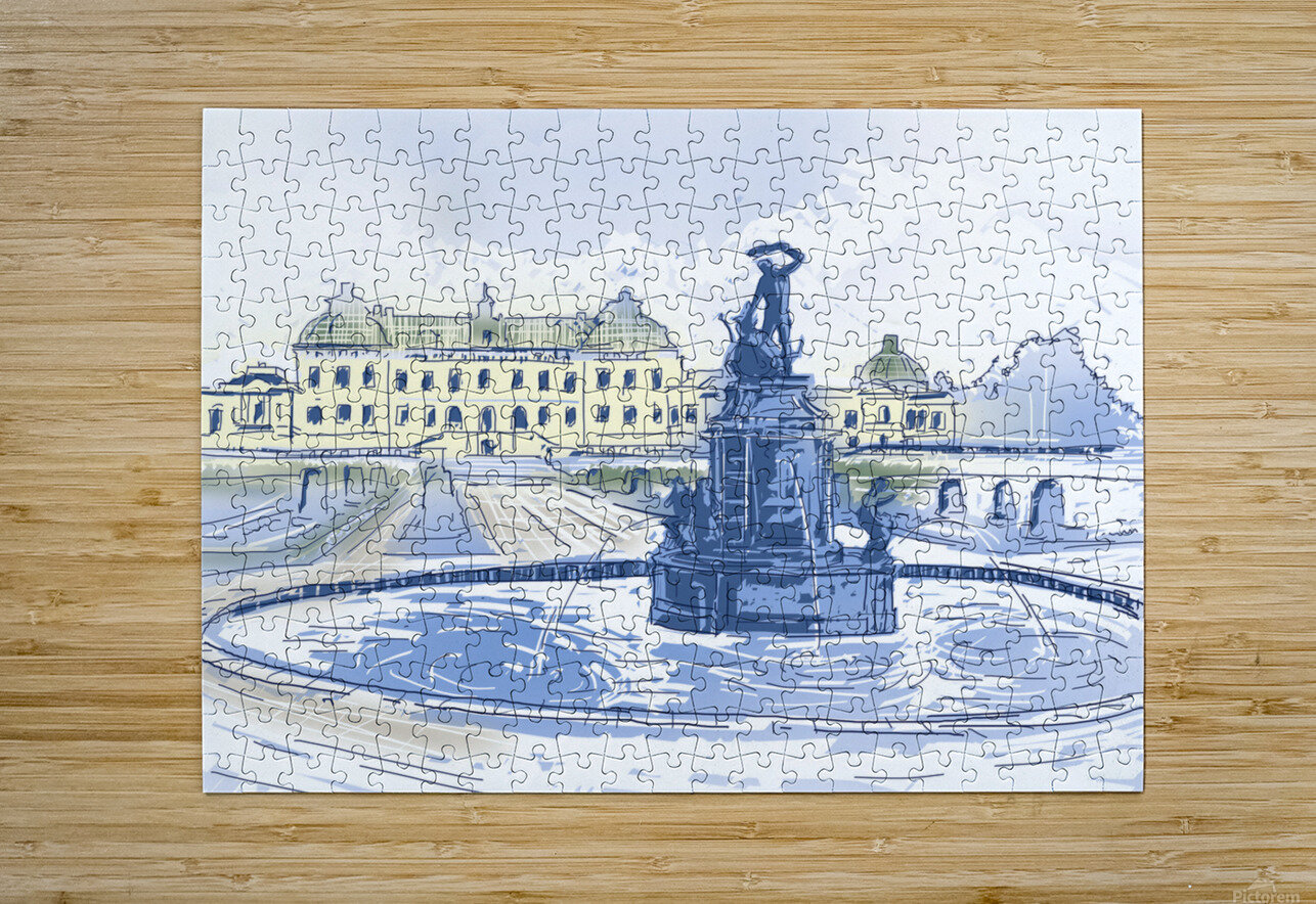 Drottningholms Slott royal palace and fountain Illustration Jorgo Puzzle printing