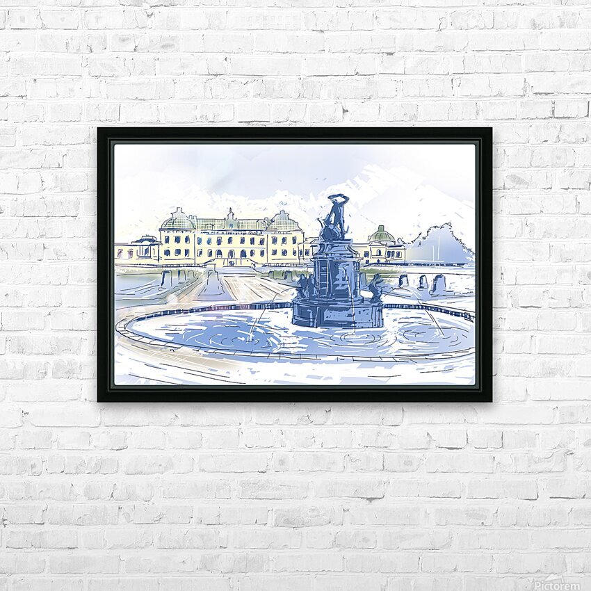 Drottningholms Slott royal palace and fountain Illustration Frame print