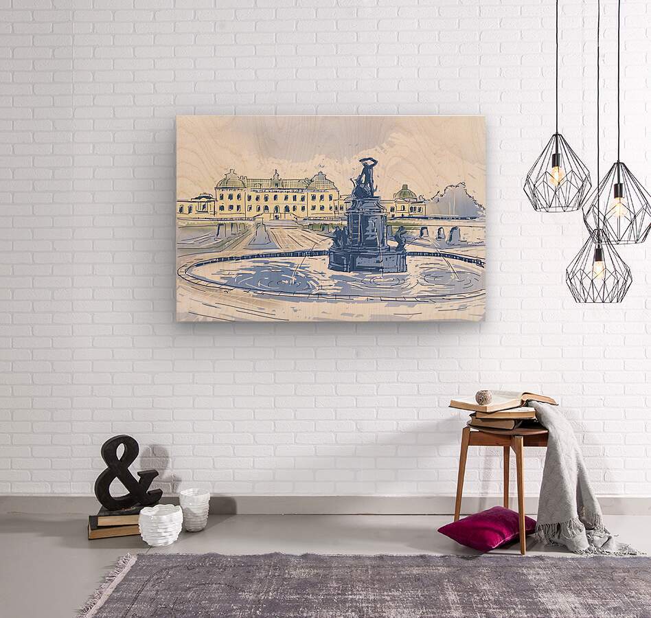 Get this artwork "Drottningholms Slott royal palace and fountain Illustration" in a framed print.