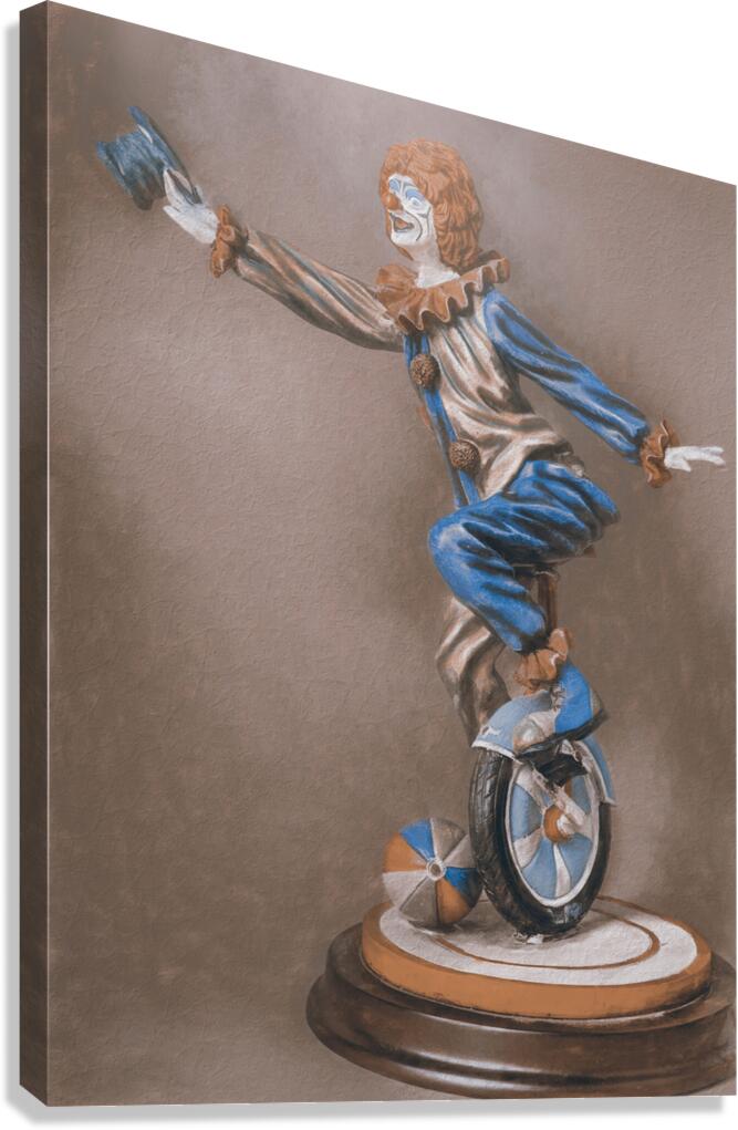 A hats off display in classic character compositions with monocycle theatre clowns and vintage circus tricks