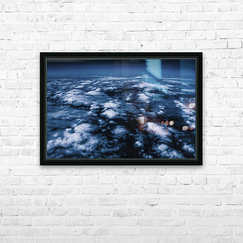 Contrasted nature scene on a frosty blue cloudscape shot from above