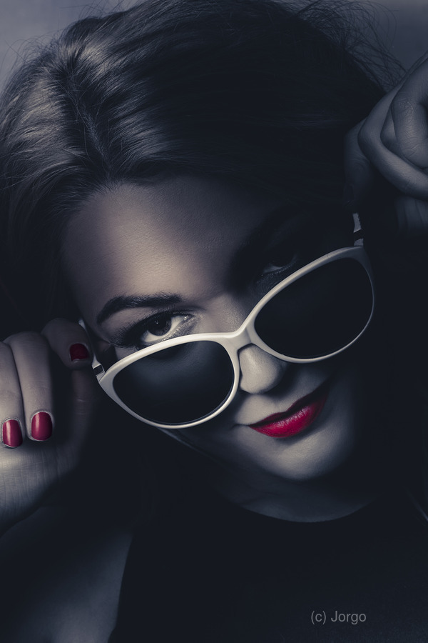 ABOUT THIS ARTWORK: DARK FASHION PORTRAIT. FEMALE MODEL IN SUNGLASSES