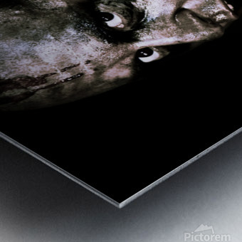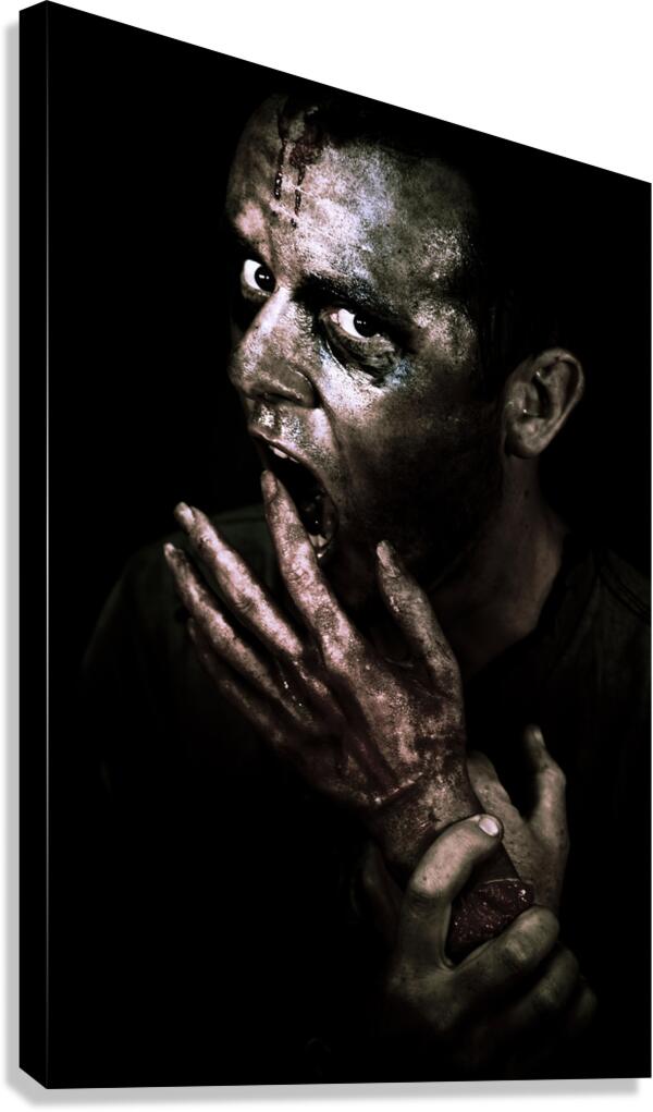 Zombie Apocalypse Concept. Dark atmospheric closeup of the face of a dirty bloodstained living dead zombie.