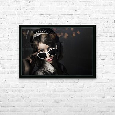 Face of dark retro fashion. Female pin-up beauty Frame print