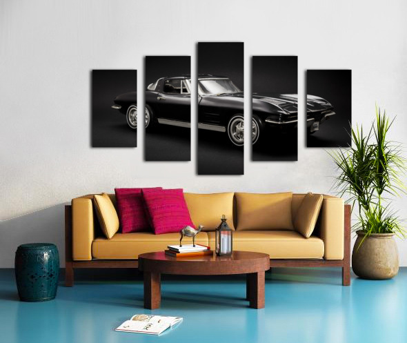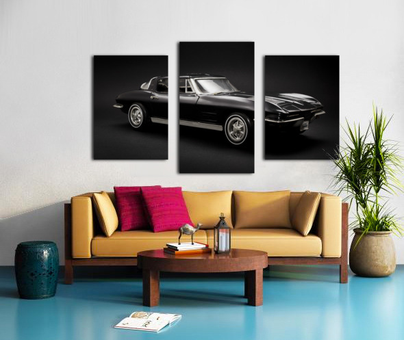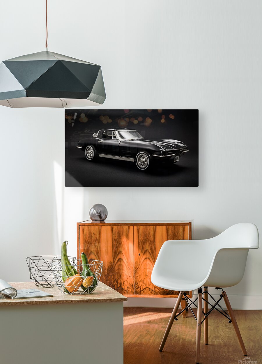 Show car art in a classic capture on a 1963 Black Chevrolet Corvette Stingray in sleek style
