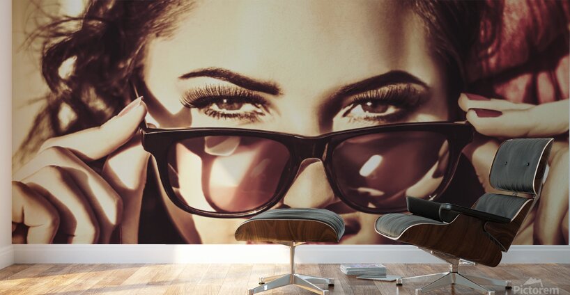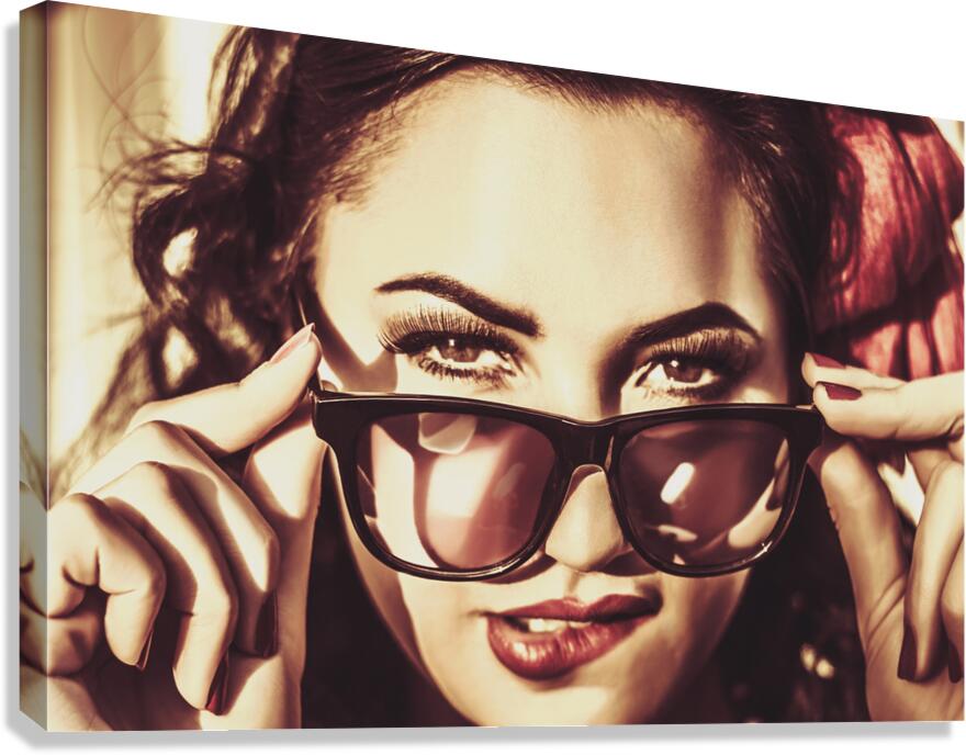 ABOUT THIS ARTWORK: HIP 60S PINUP GIRL IN CLASSIC EYEWEAR SUNGLASSES