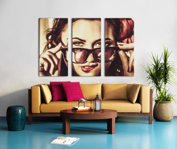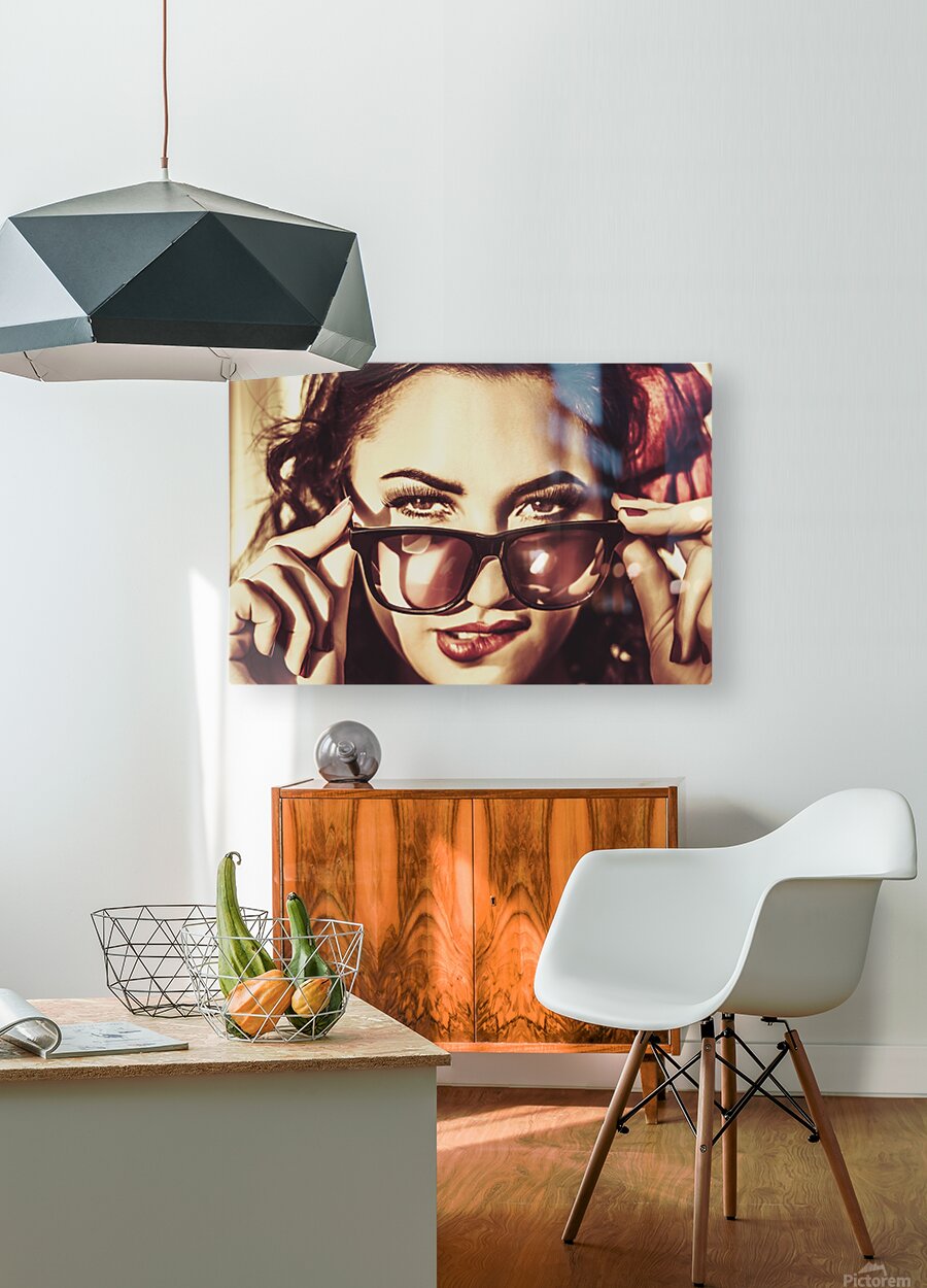 Hip 60s pinup girl in classic eyewear sunglasses Frame print