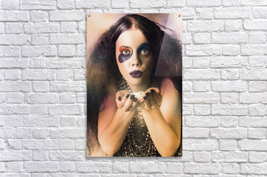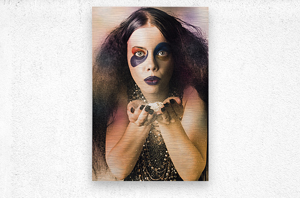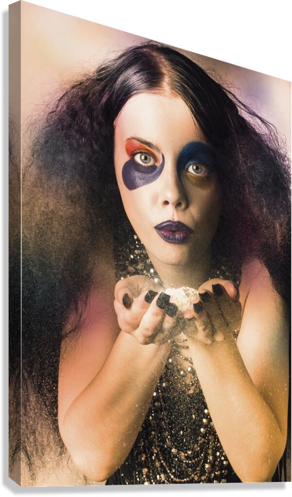 Spiritual magician performing a magical trick when summonsing supernatural powers from powder spells in a depiction of white magic