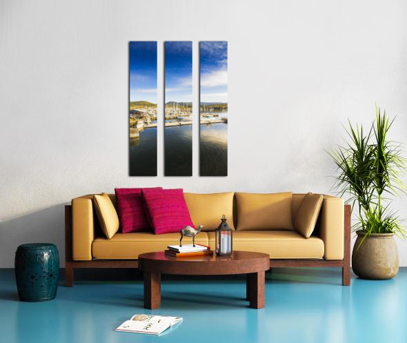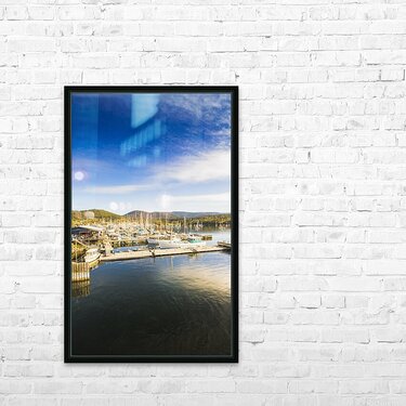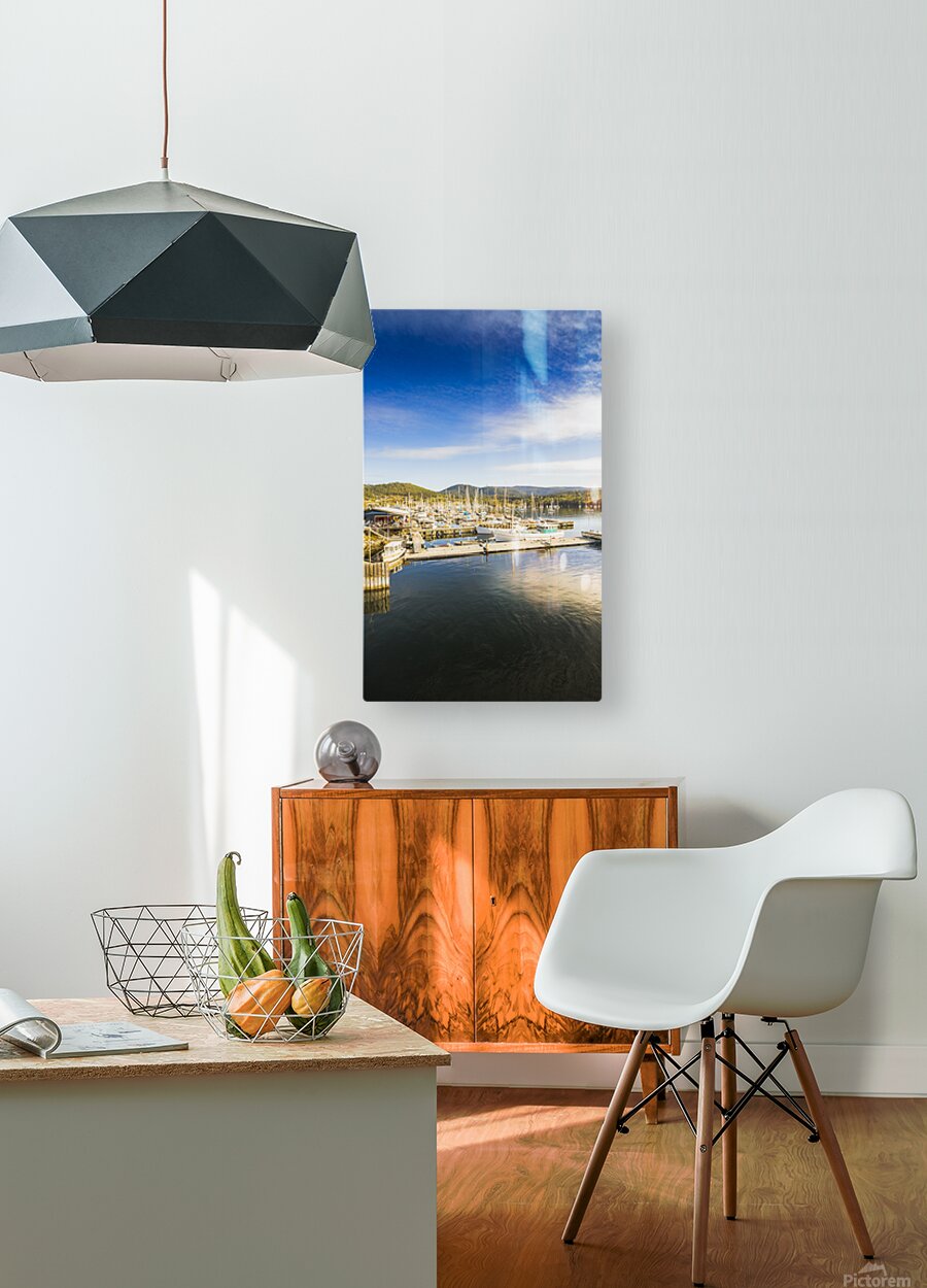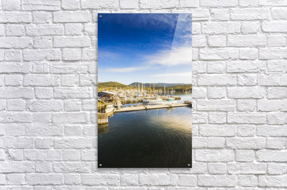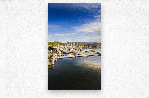 Crisp vertical landscape in clear clarity of boating docks with ships at berth. Kettering Tasmania Australia