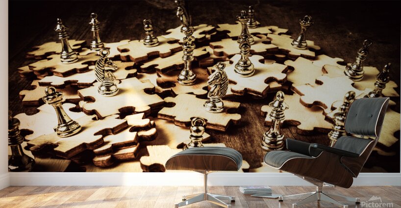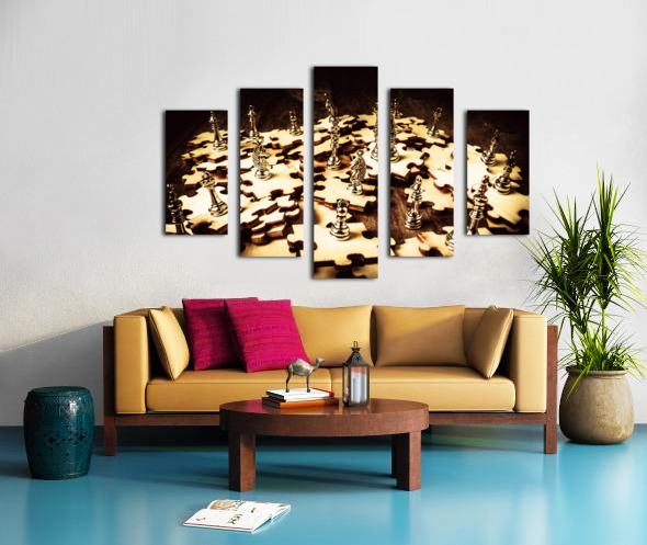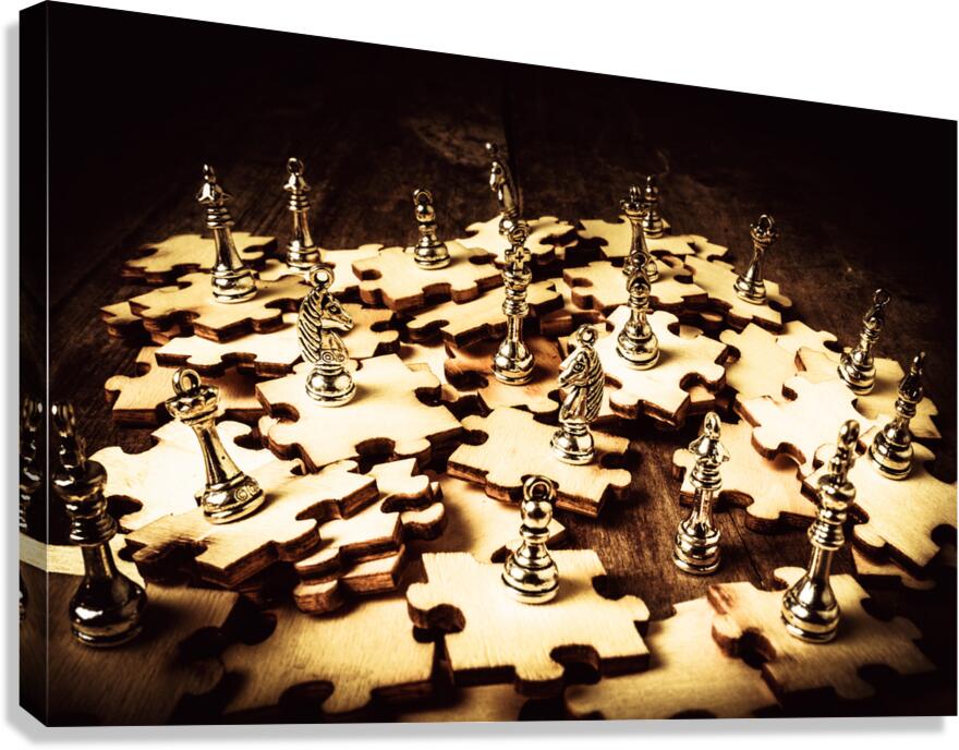 Creative still-life photo on a abstract of battle ready chess pieces viying for a completion strategy