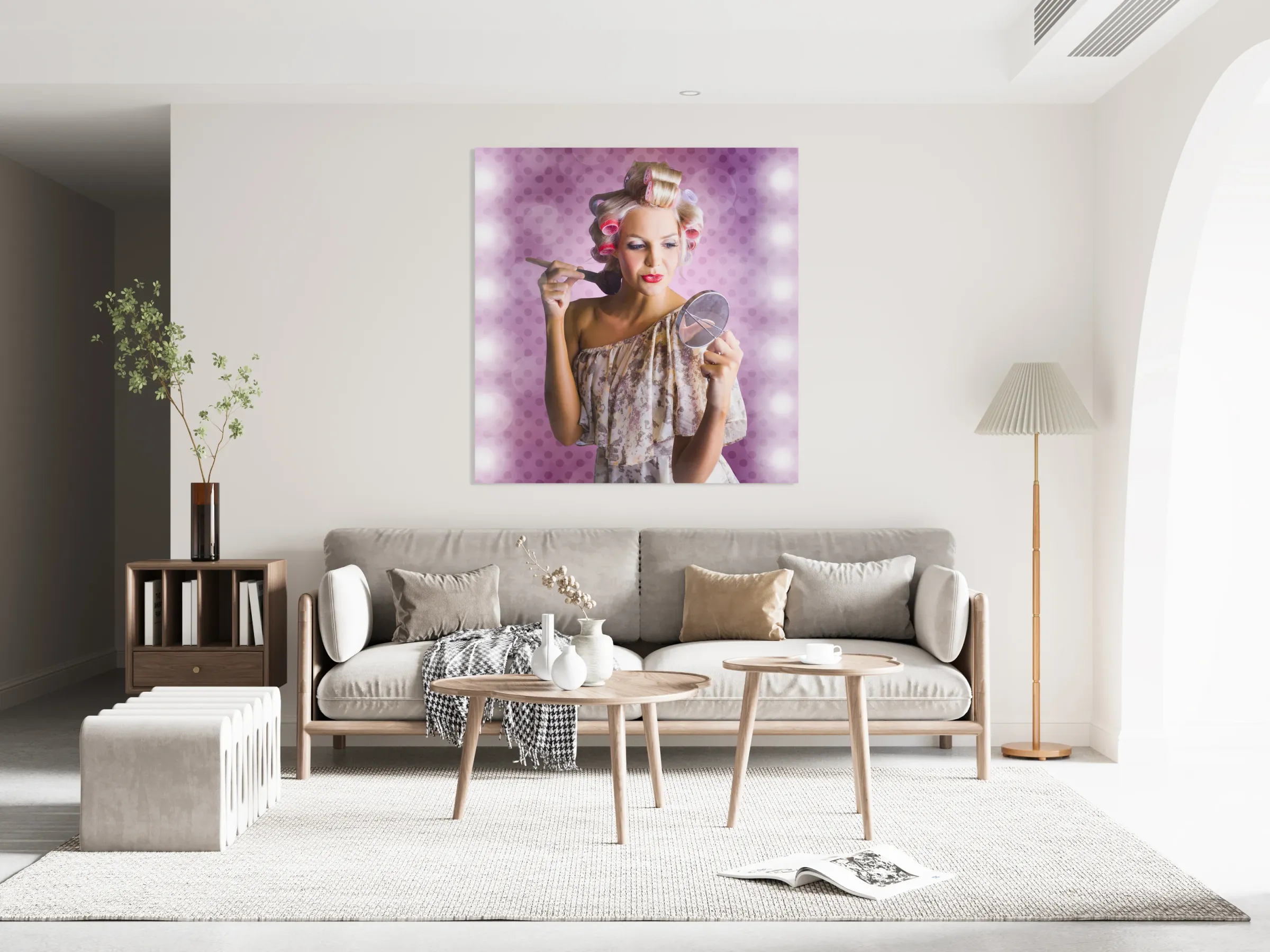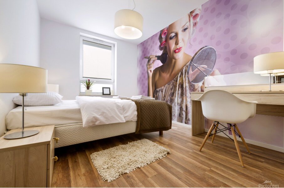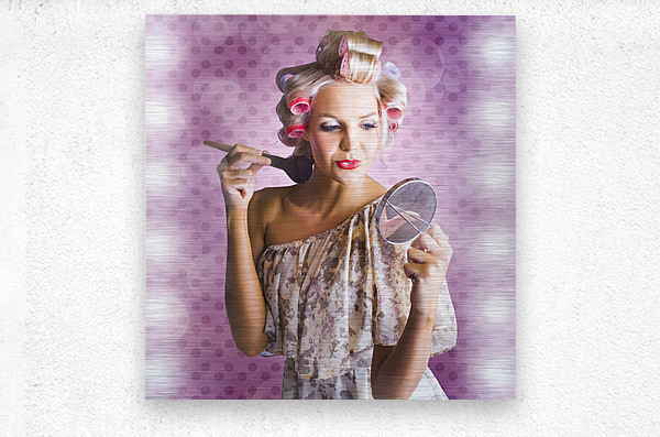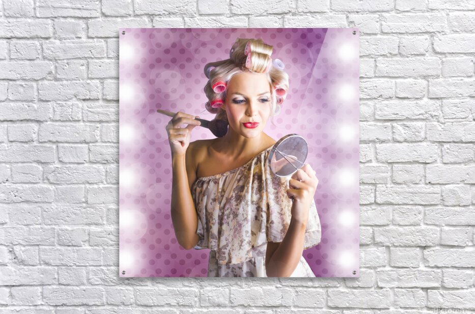 ABOUT THIS ARTWORK: BEAUTIFUL RETRO WOMAN APPLYING MAKEUP COSMETICS