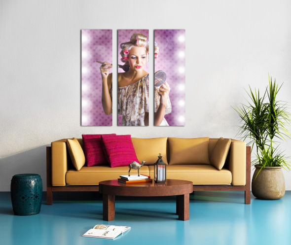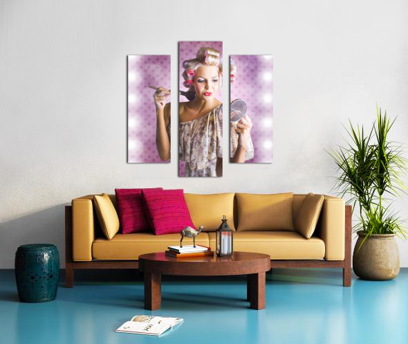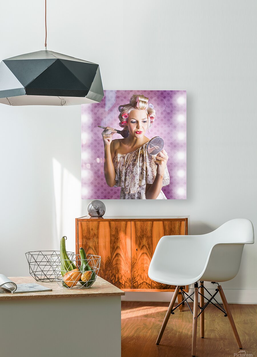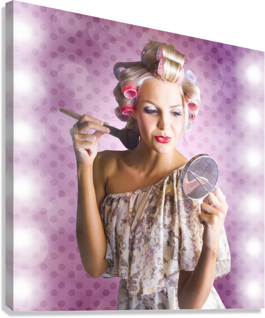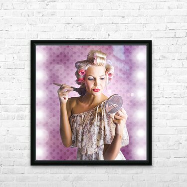Beautiful Retro Woman Applying Makeup Cosmetics Picture Frame Printing