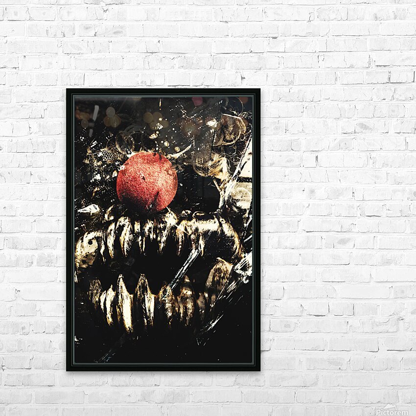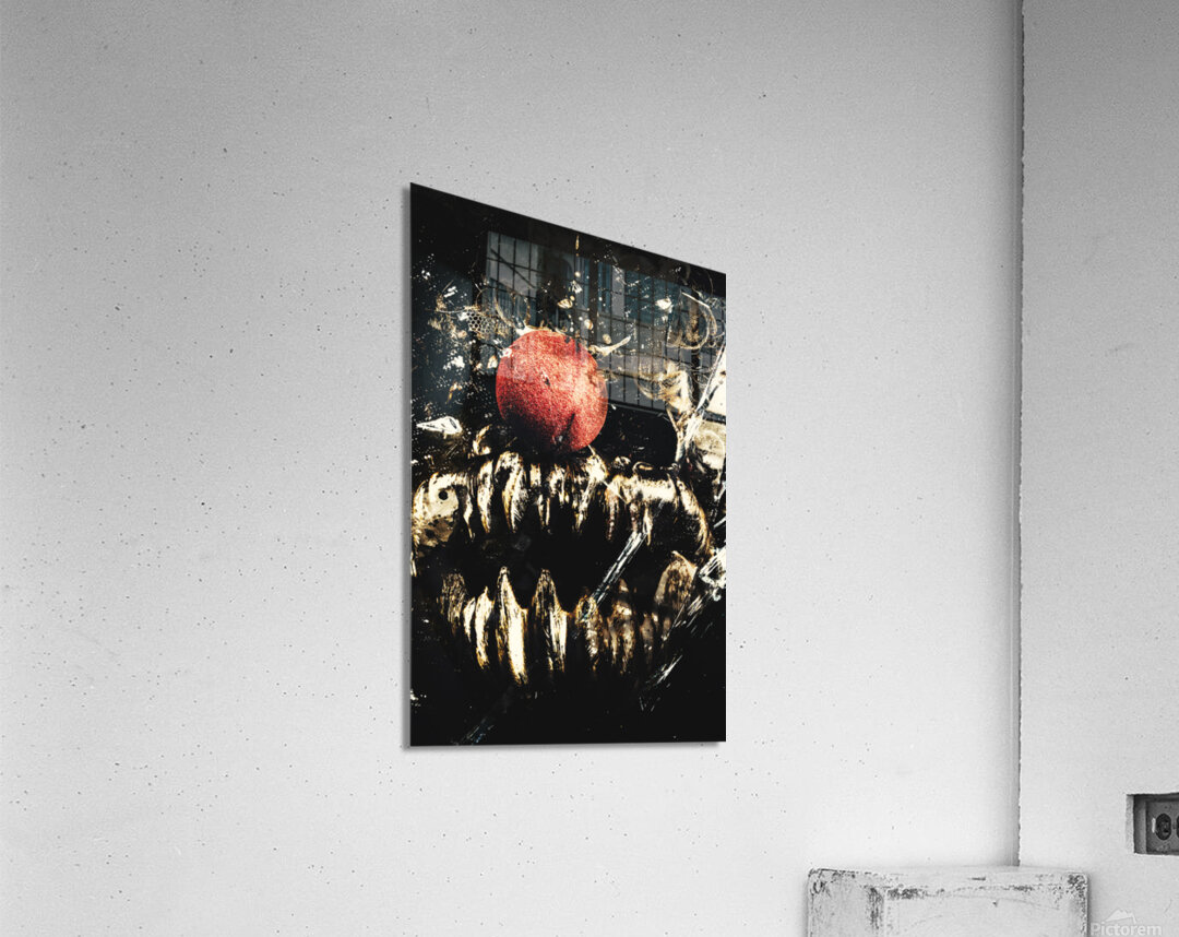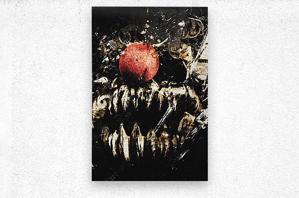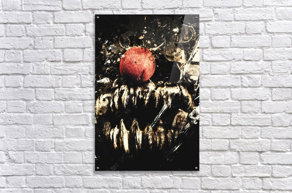 Halloween horror portrait on a terror clown spraying splinters of fear. Dark carnival art
