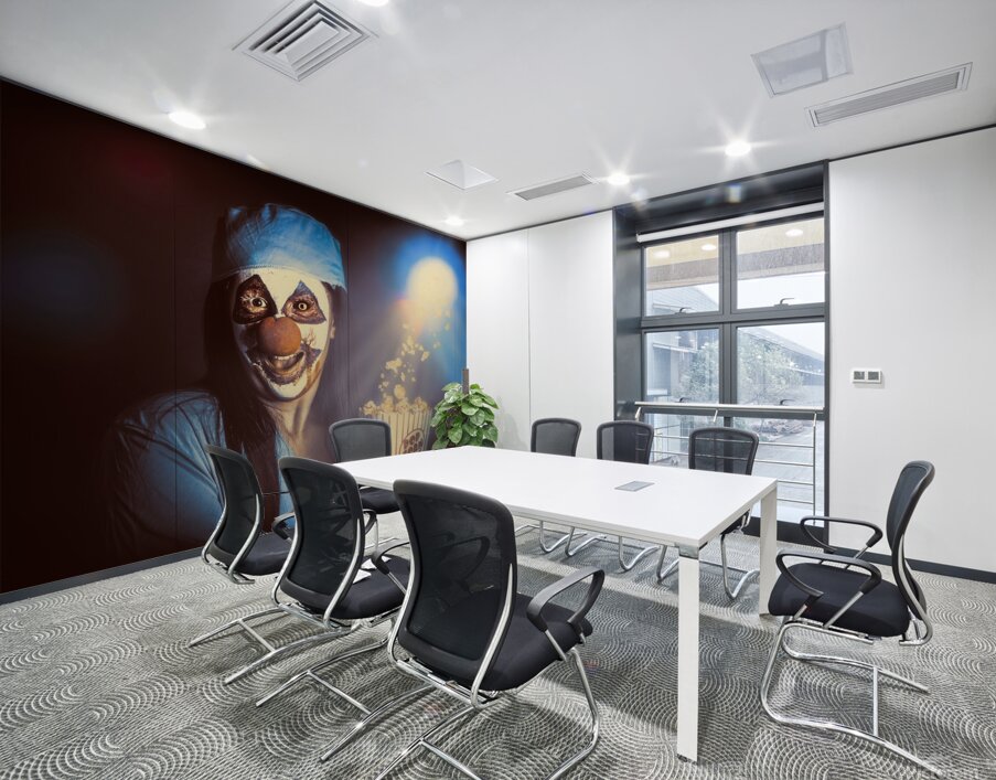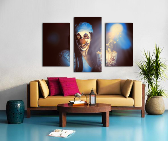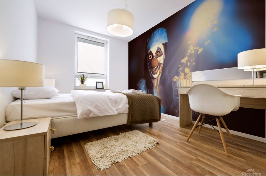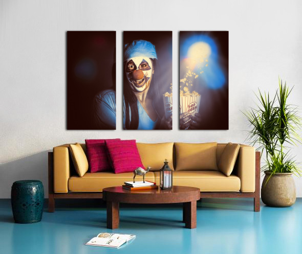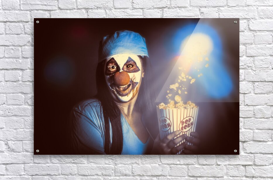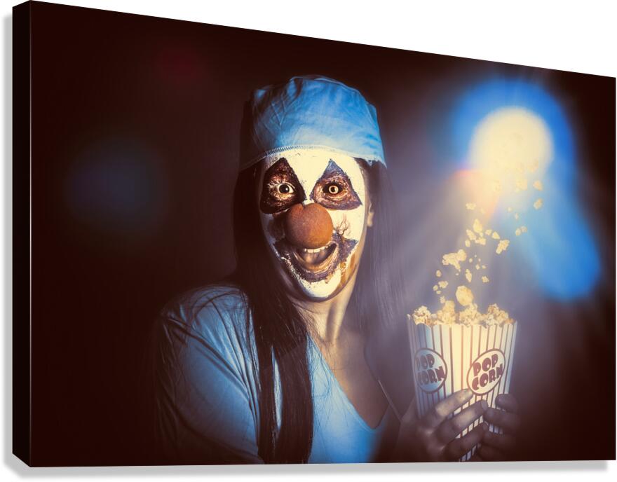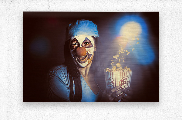 ABOUT THIS ARTWORK: SCARY CLOWN WATCHING HORROR MOVIE IN THEATER