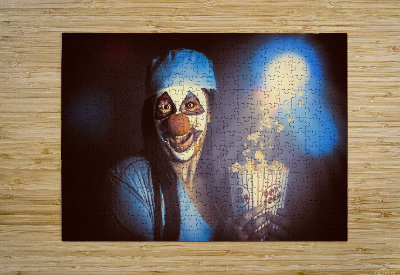 Scary clown watching horror movie in THEATER Jorgo Puzzle printing