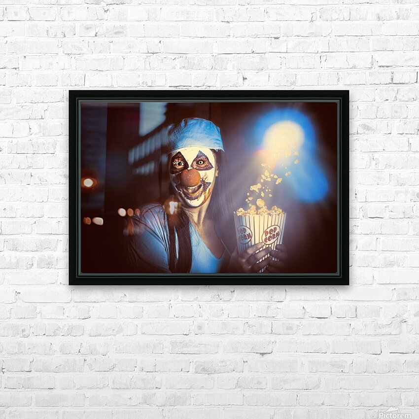 Scary clown watching horror movie in THEATER Picture Frame Printing
