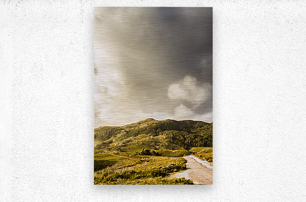 Rural West Coast Tasmania landscape with a scenic view of dirt roads leading to storm covered mountains. Trial Harbour Australia