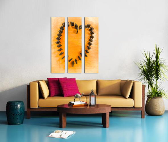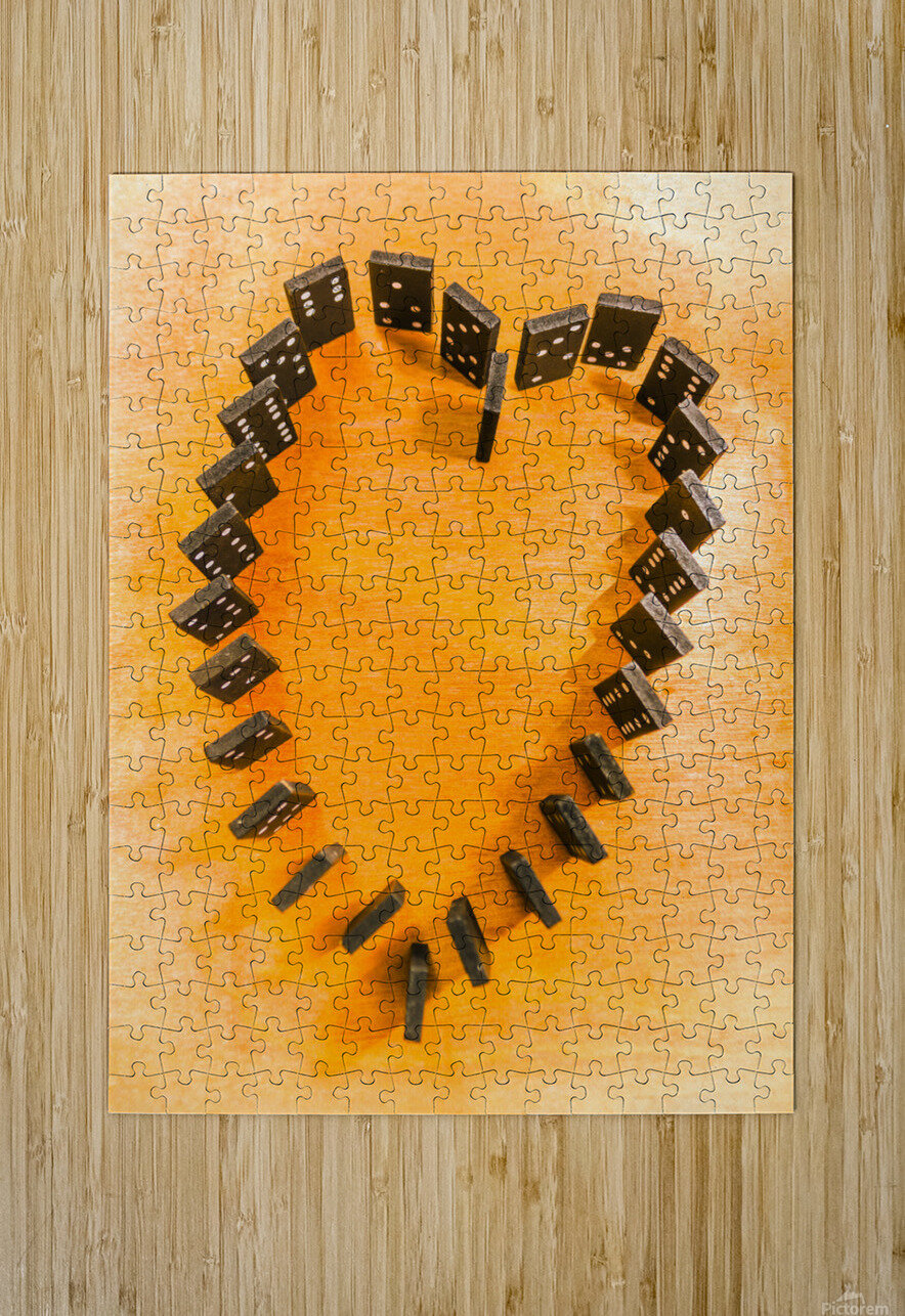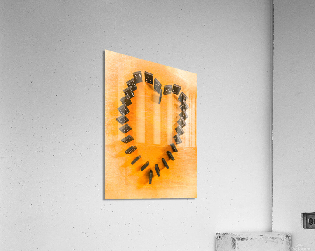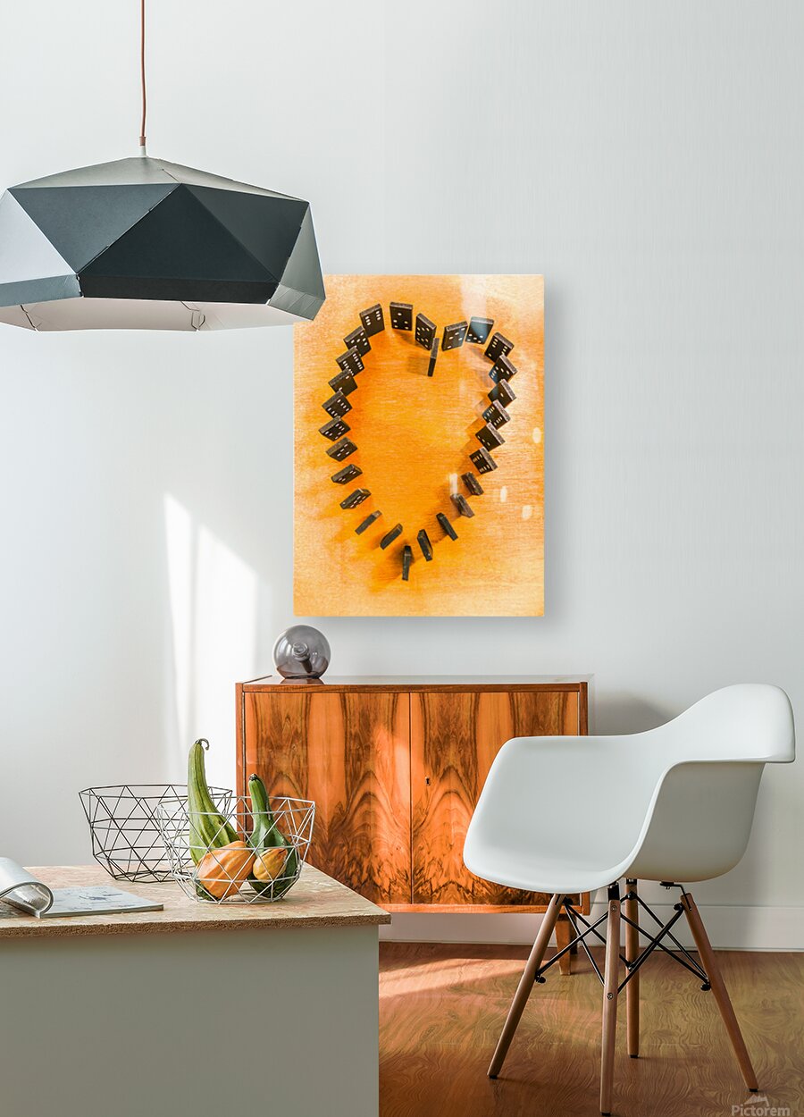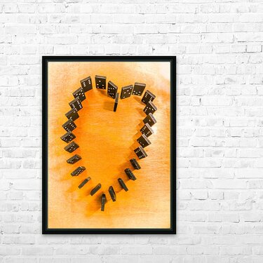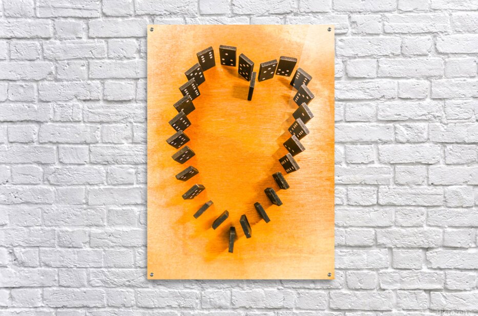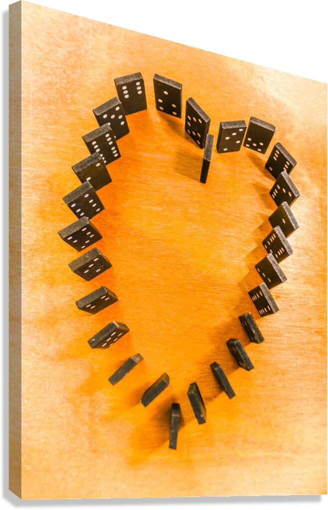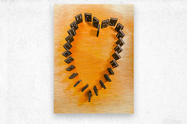 A domino display in symbolic romance with the last stand for heart shape unification. Chips are stacked