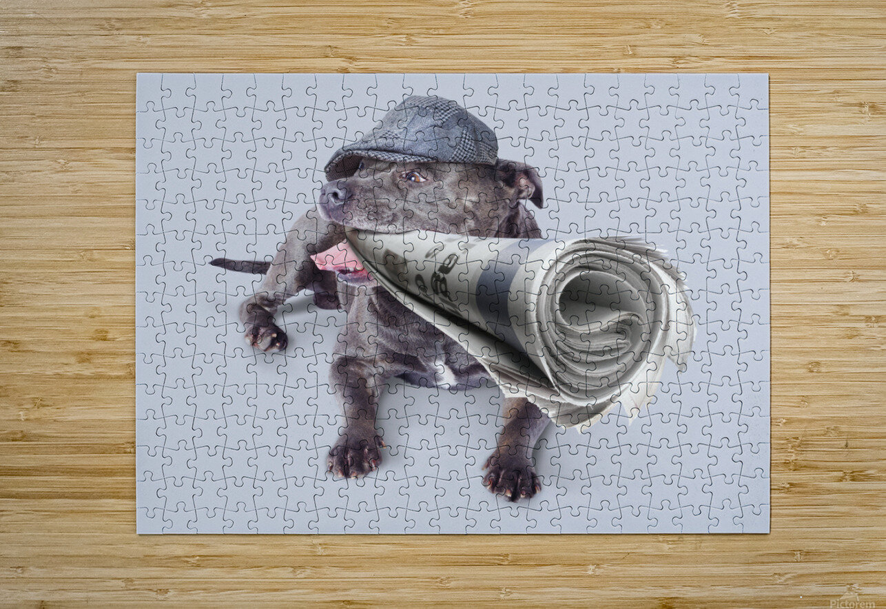 Isolated newspaper dog carrying latest news Jorgo Puzzle printing