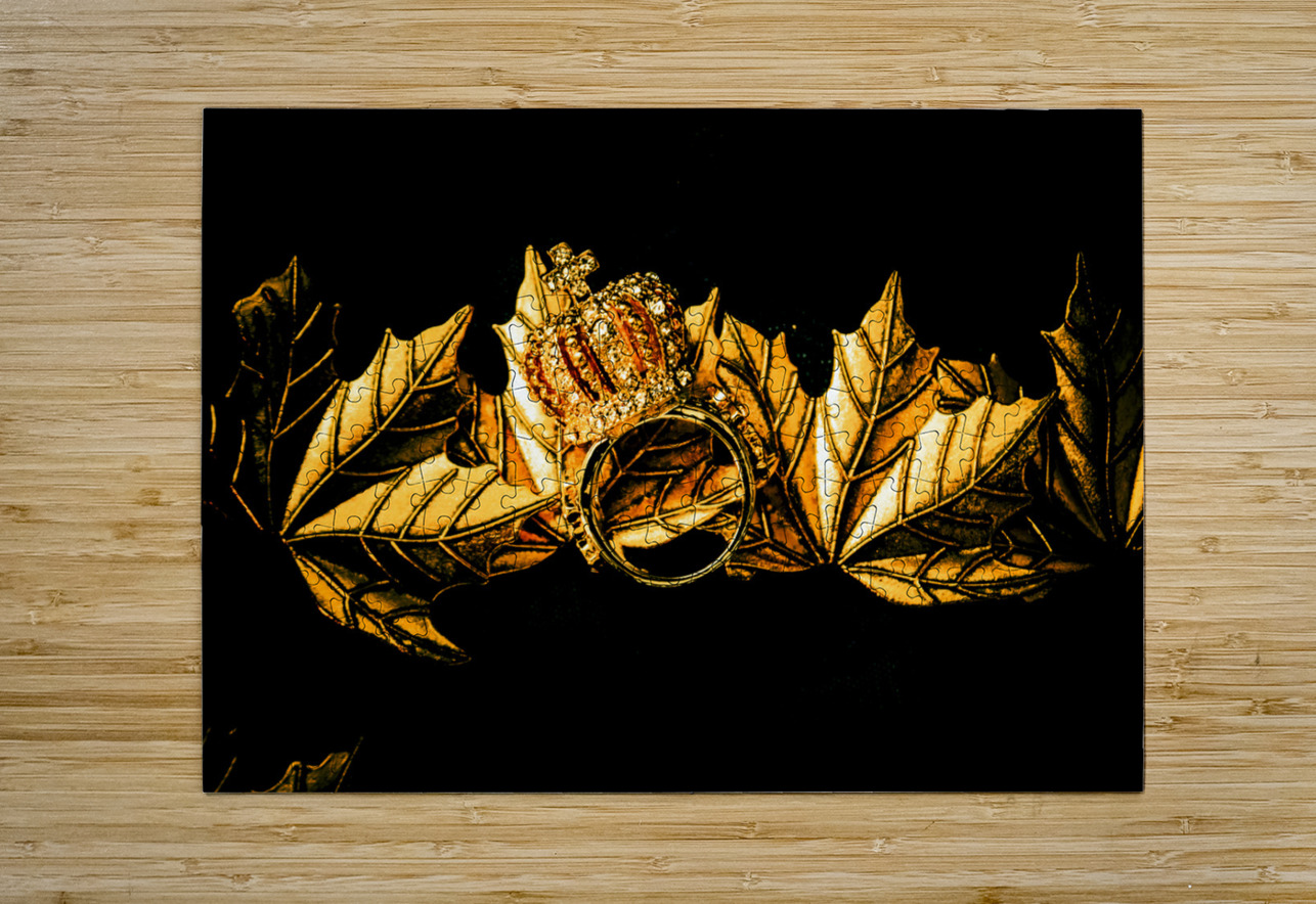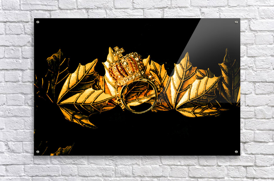 Seasonal gem art on a gold assortment of monarchy fashion accessories. Kingdom in fall