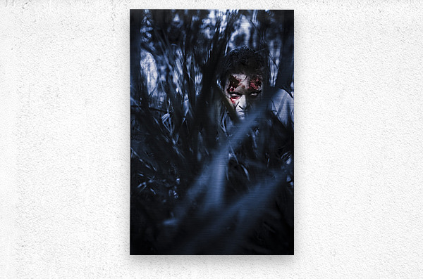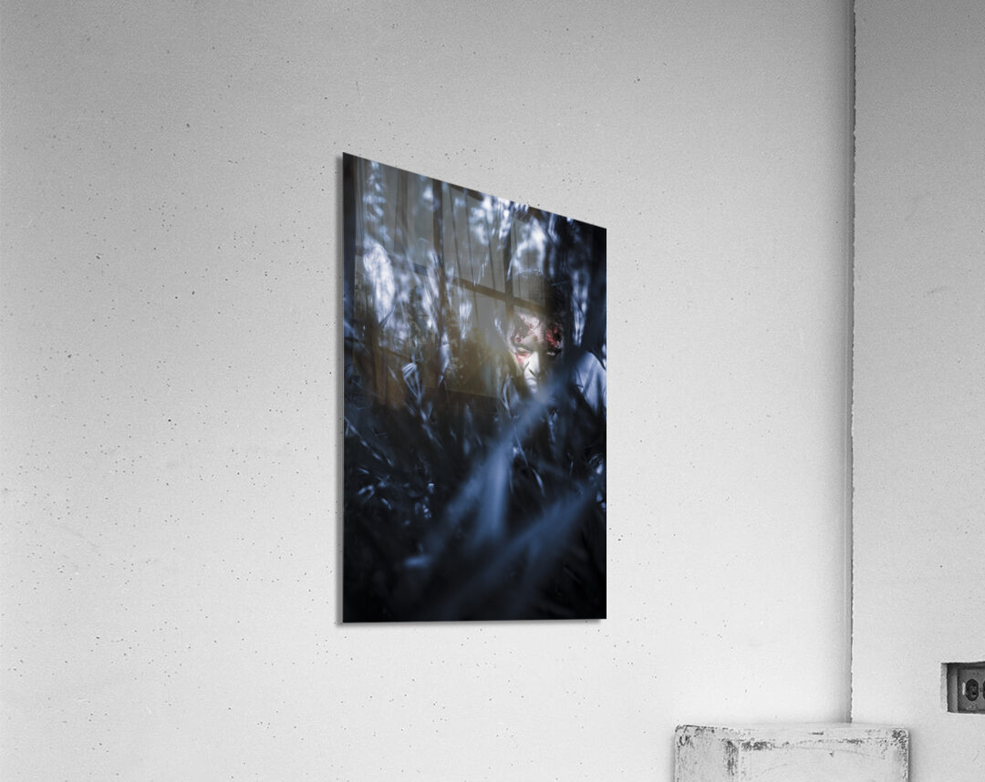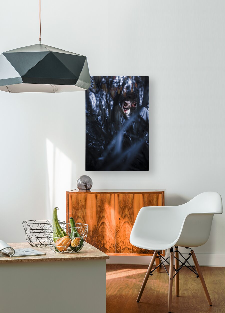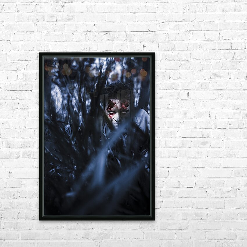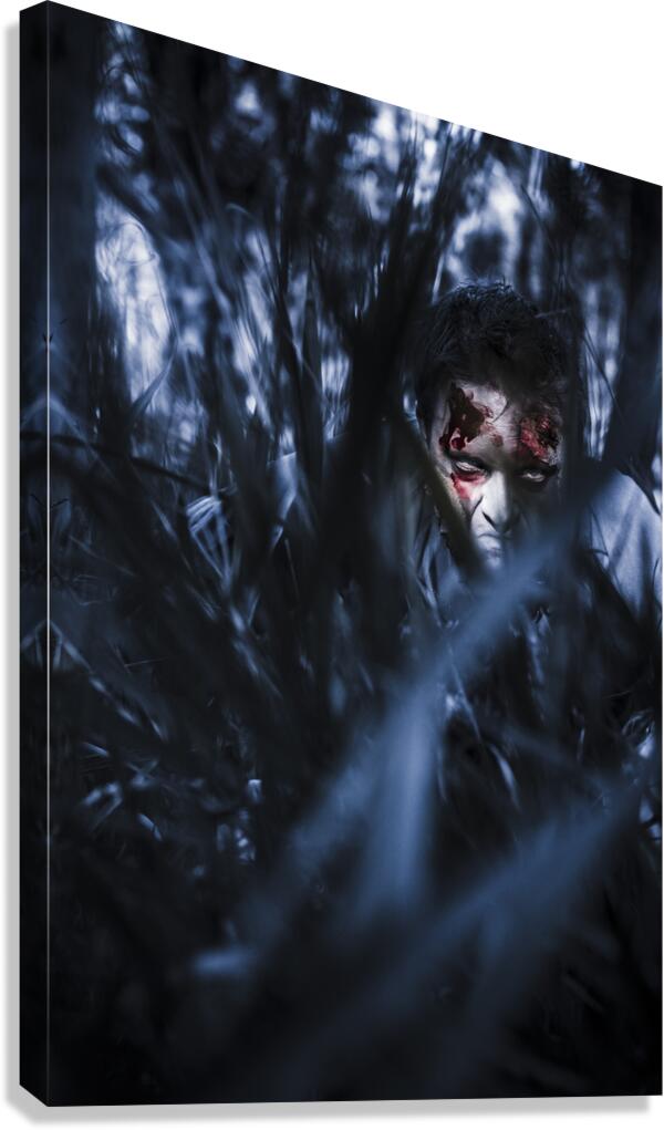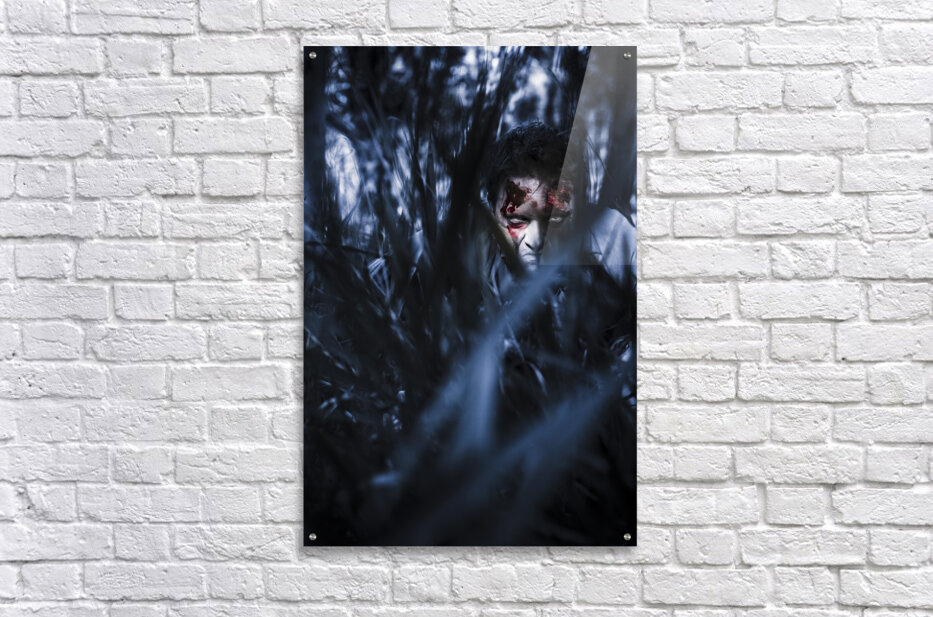 Get this artwork "Evil man hiding in silence at dark forest " in a framed print.
