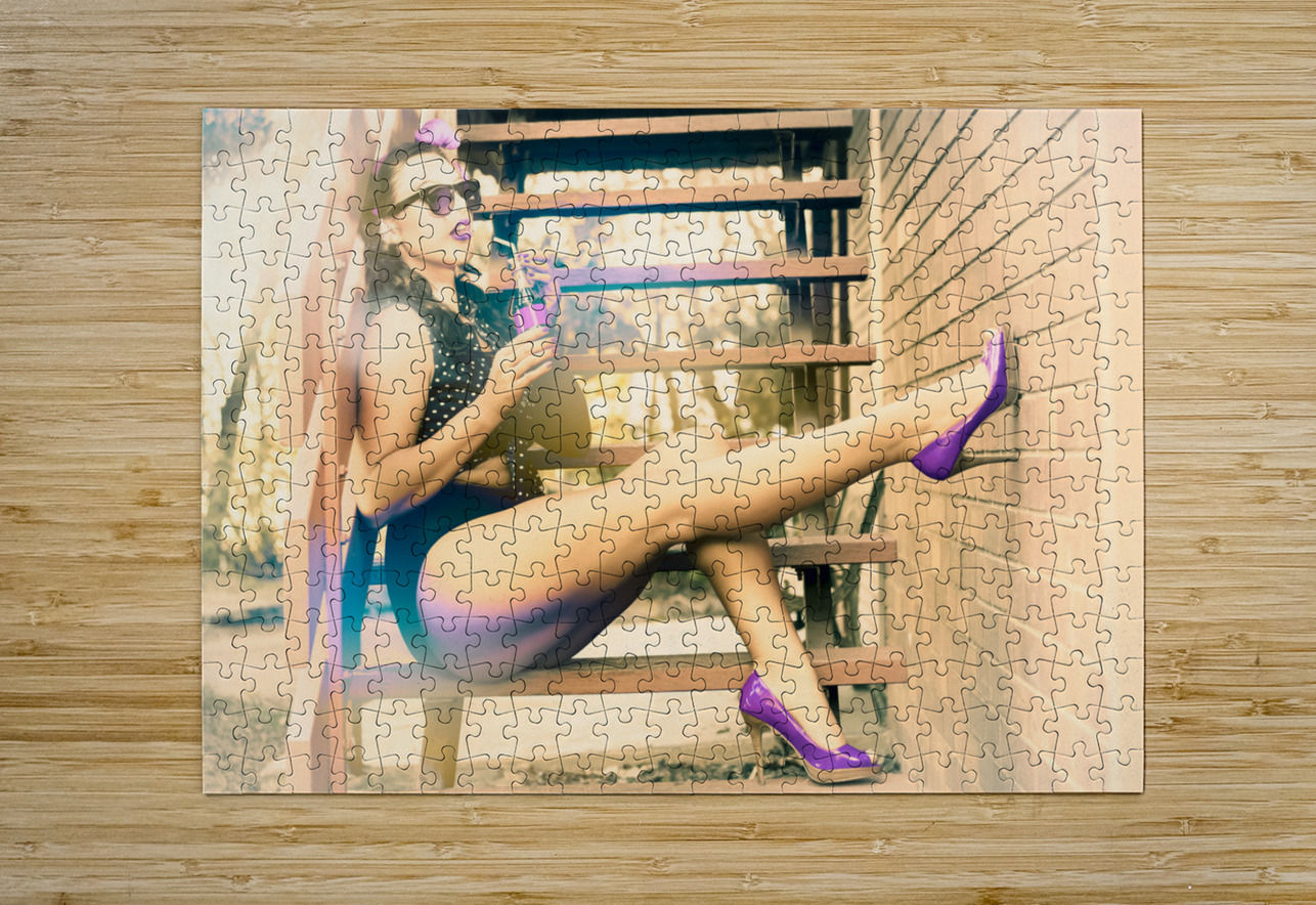 Eighties pinup woman drinking pop art soda Jorgo Puzzle printing