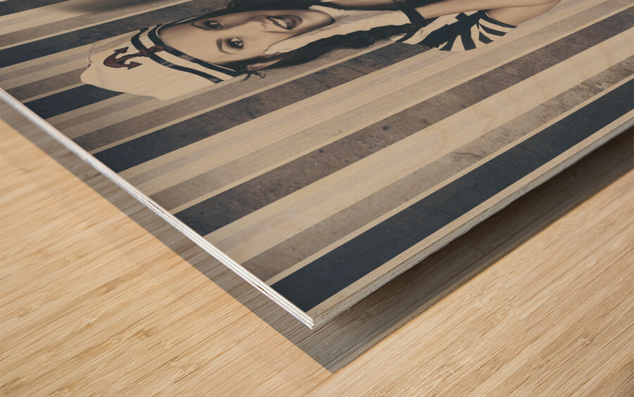 Young retro pinup woman shouting maritime surprise Wood print