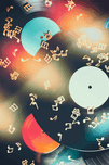 Retro music art on a visual display of harmonic sound recorded in colours of sixties pop