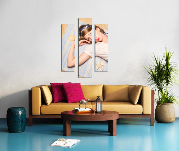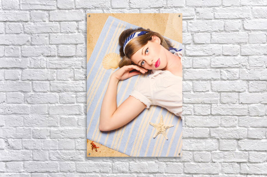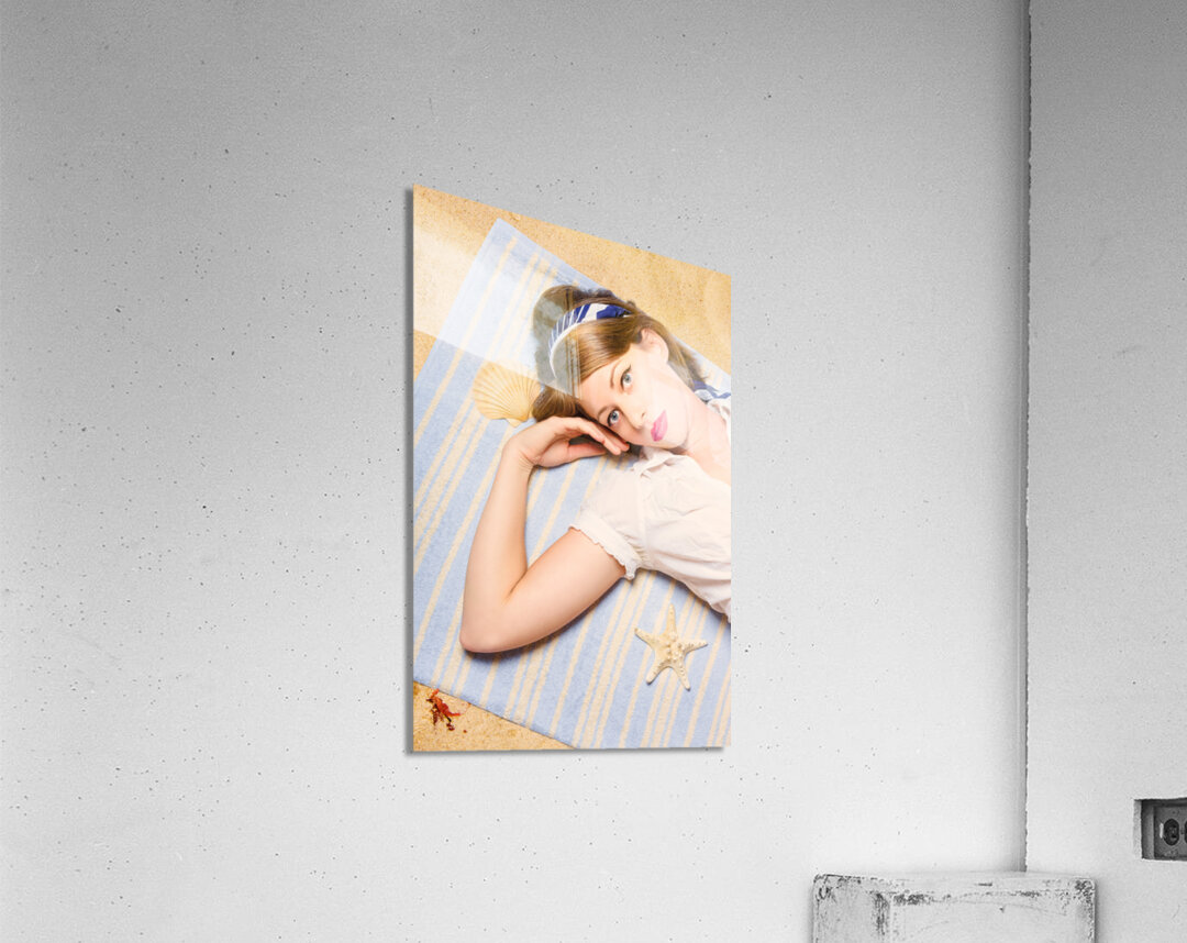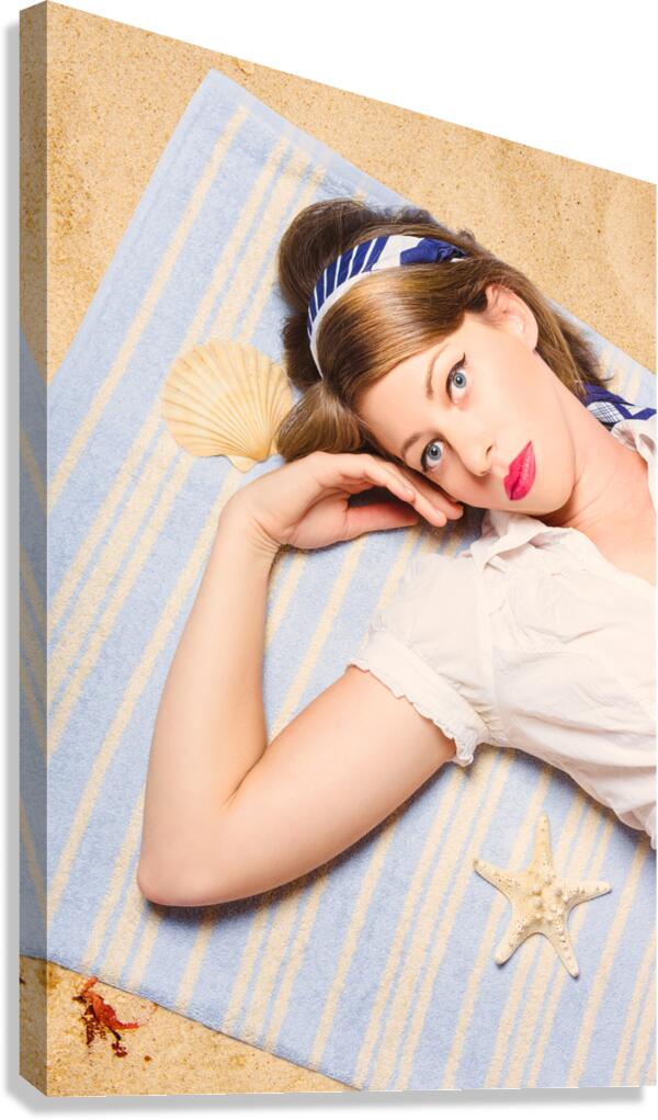 ABOUT THIS ARTWORK: HOT RETRO PINUP GIRL LYING ON BEACH IN AUSTRALIA