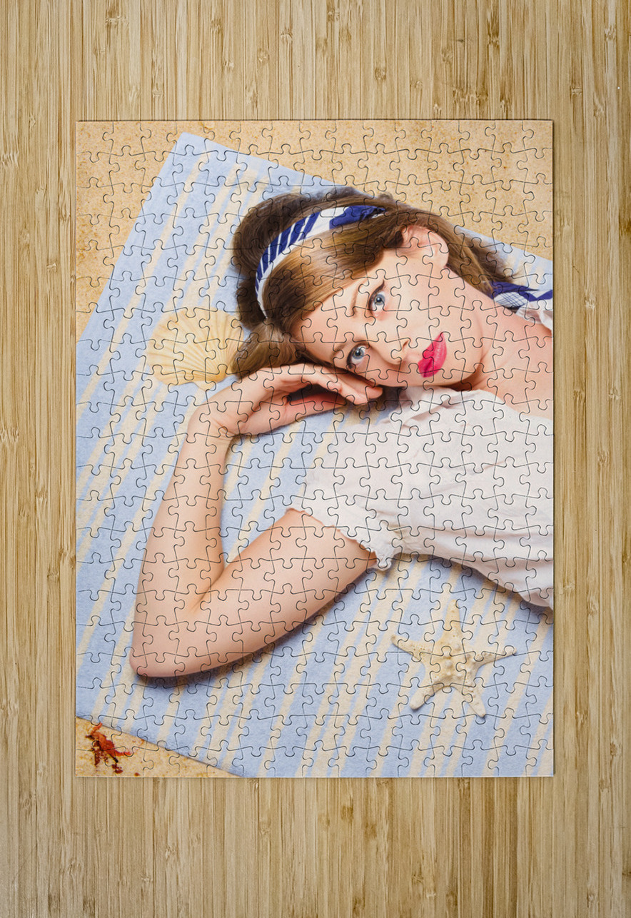 Hot retro pinup girl lying on beach in Australia Jorgo Puzzle printing