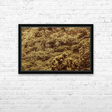 Muted landscape art on a stairwell leading through tropical island trees to higher elevations. Photographed: Frenchmans Beach Point Lookout North Stra...[+]