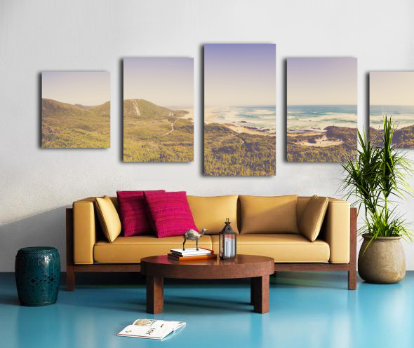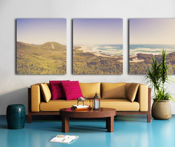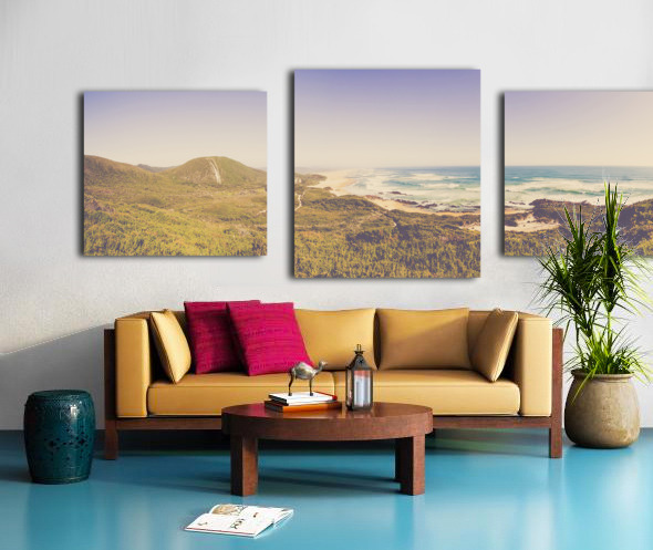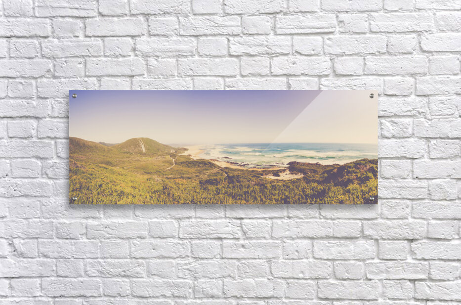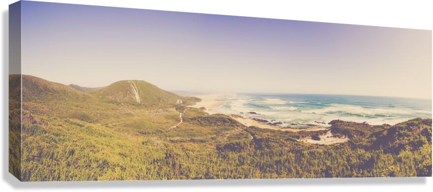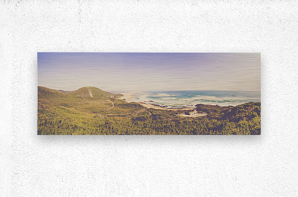Fine art panorama landscape on a wide elevated view of vast ocean stretch. Trial Harbour to Ocean Beach West Coast Tasmania Australia