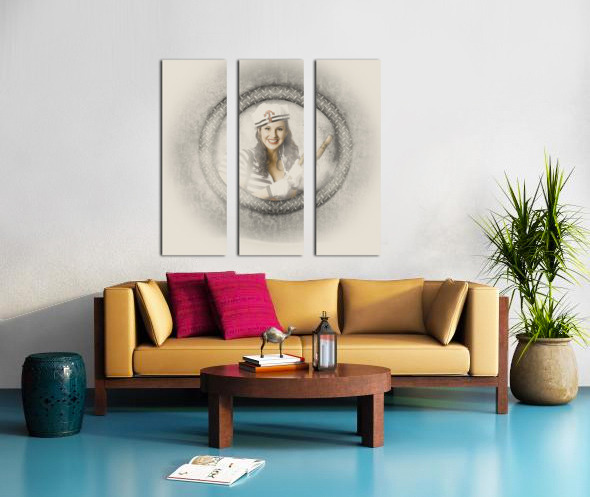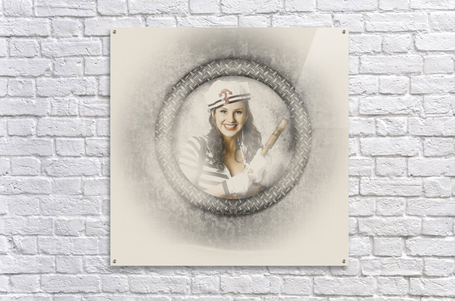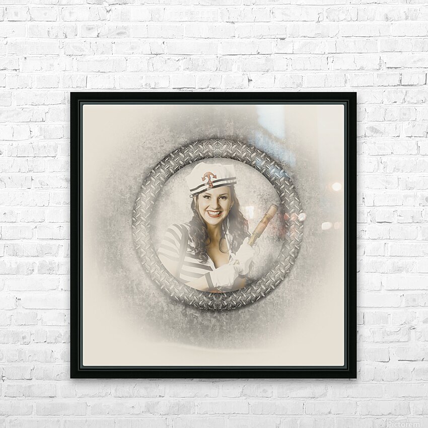 Boating pin-up woman on nautical shipping voyage Picture Frame Printing